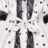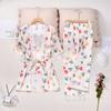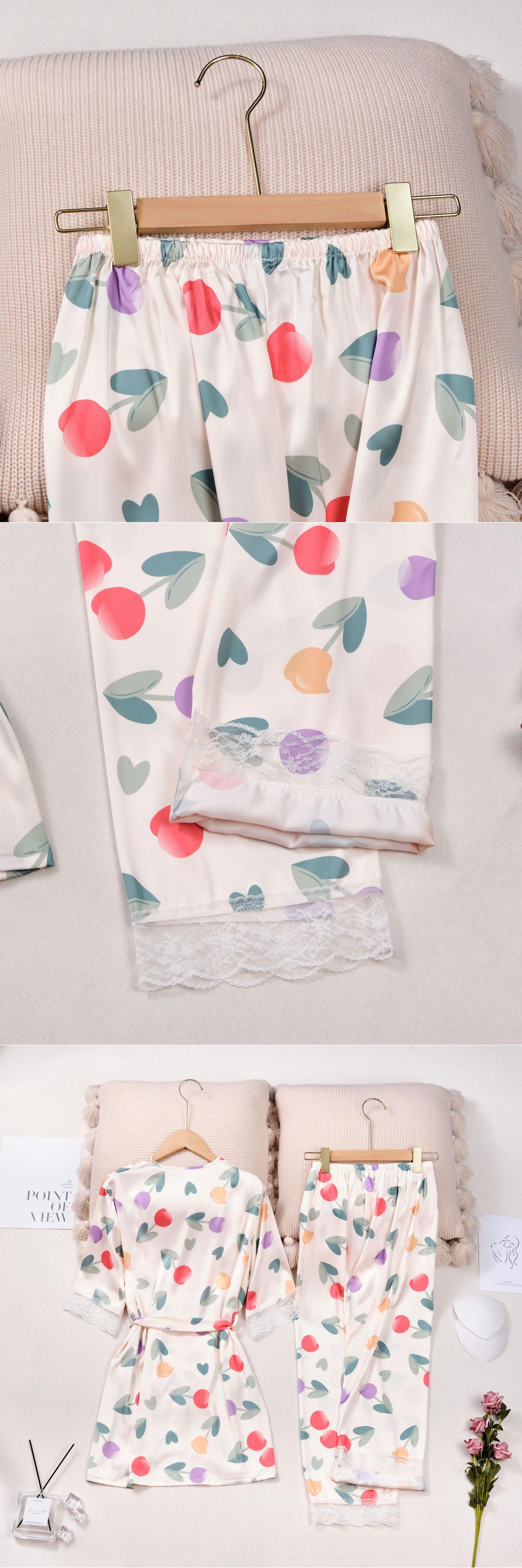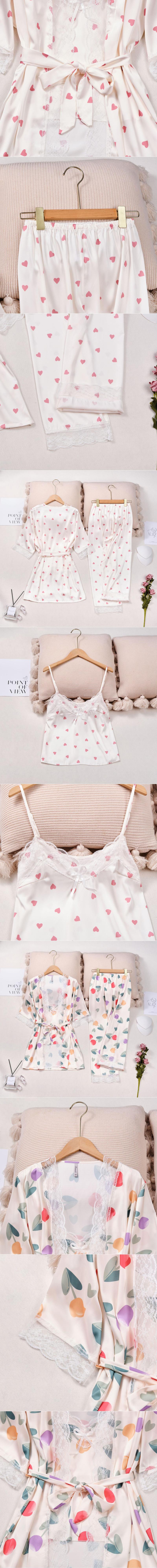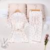 Pijama para Mujer Pantalón con Tirantes Camisón Conjunto de Tres Piezas Primavera y Otoño Seda Traje Sexy de Encaje Ropa para el Hogar Se Puede Usar Afuera
