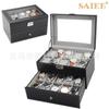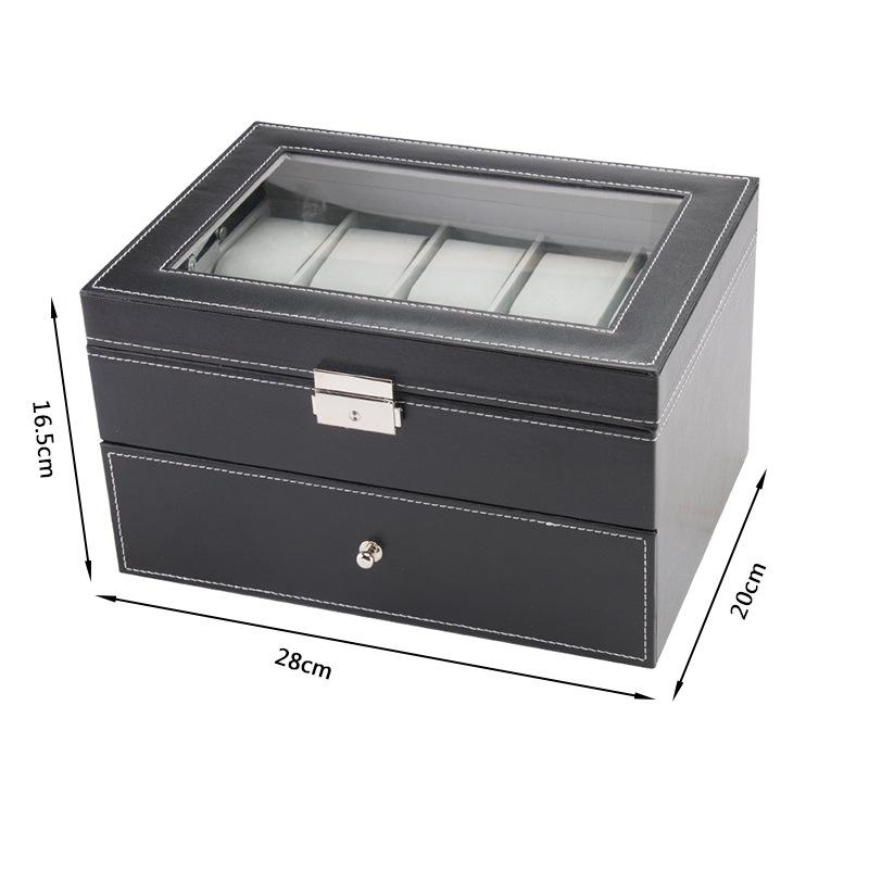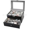 | Caja de exhibición de colección de almacenamiento de relojes de fibra de carbono de madera de 10 posiciones Caja de madera de almacenamiento de relojes de 10 paquetes |