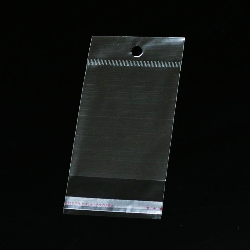 Bolsa OPP con cabezal colgante tamaño real = Tamaño total menos 2 cm para la parte de sellado y menos 3 cm para la parte del orificio para colgar