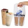 Bolsa desechable para embalaje de té con leche, café, bebida para llevar, para una o dos tazas, transparente, esmerilada, de plástico, con asa, personalizada