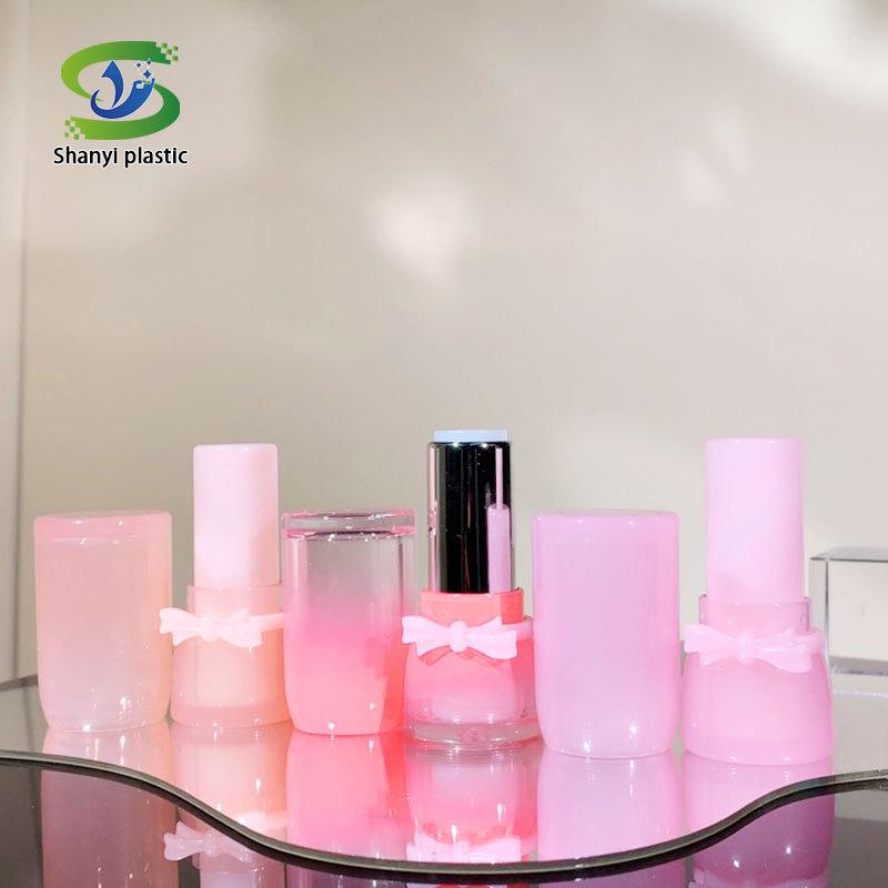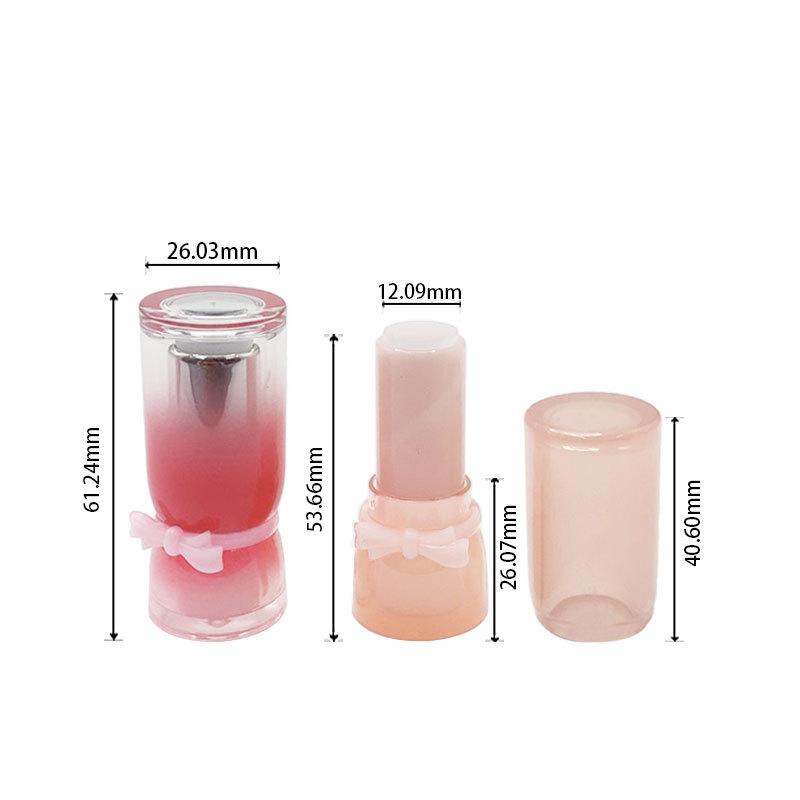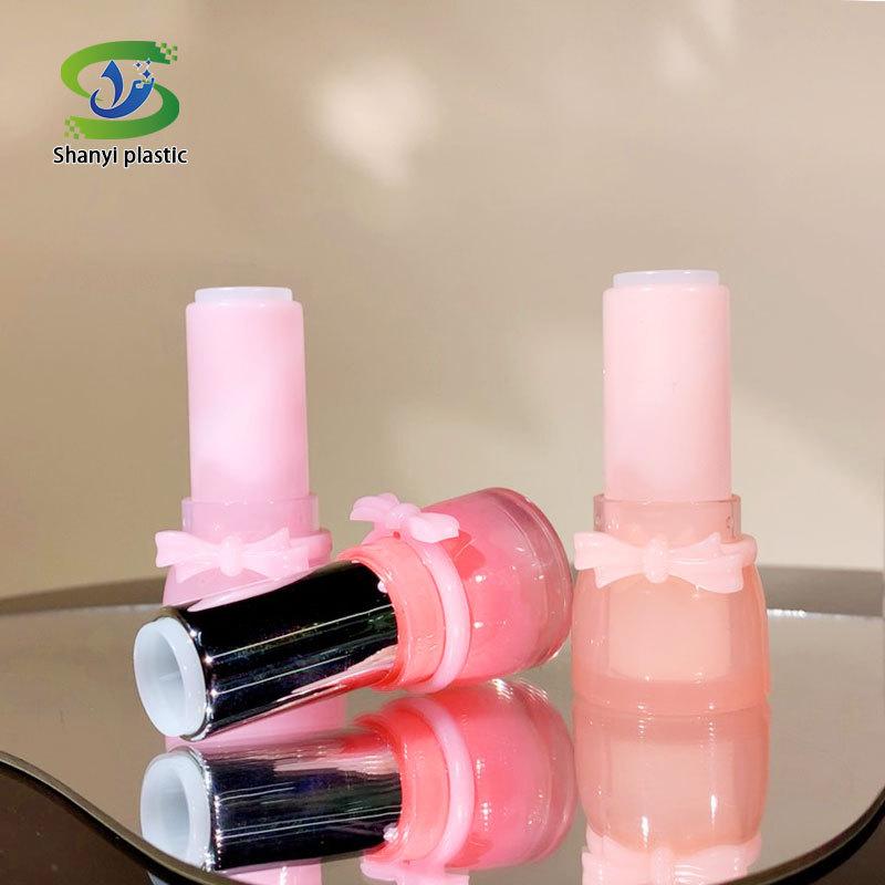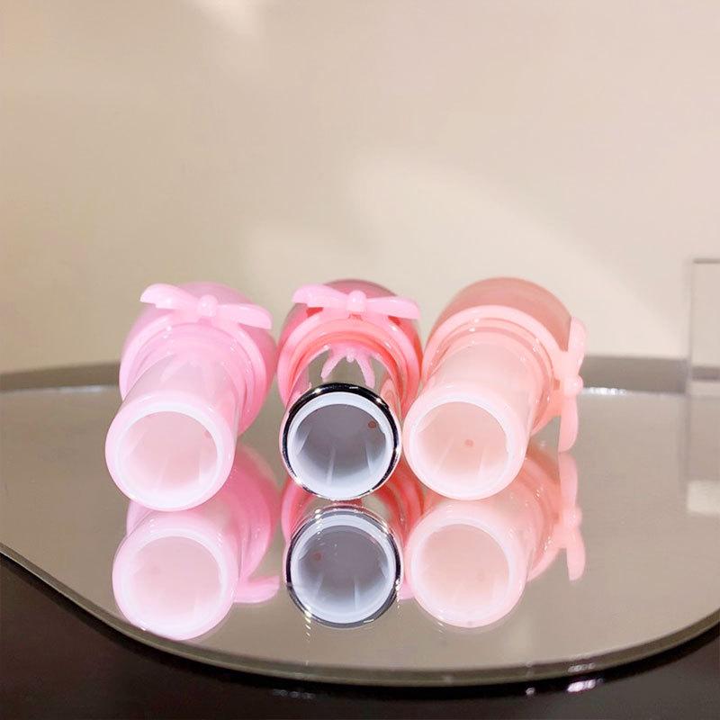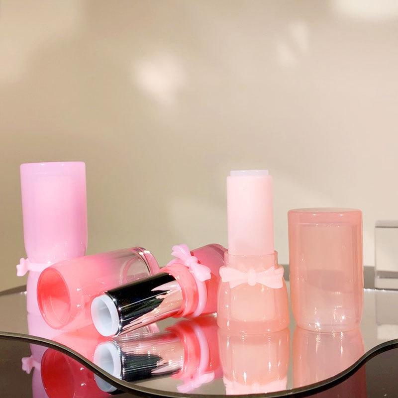 Tubo de labial redondo rosa nuevo de fábrica con material de embalaje de concha de lazo, tubo de bálsamo labial de alto valor de color, tubo vacío