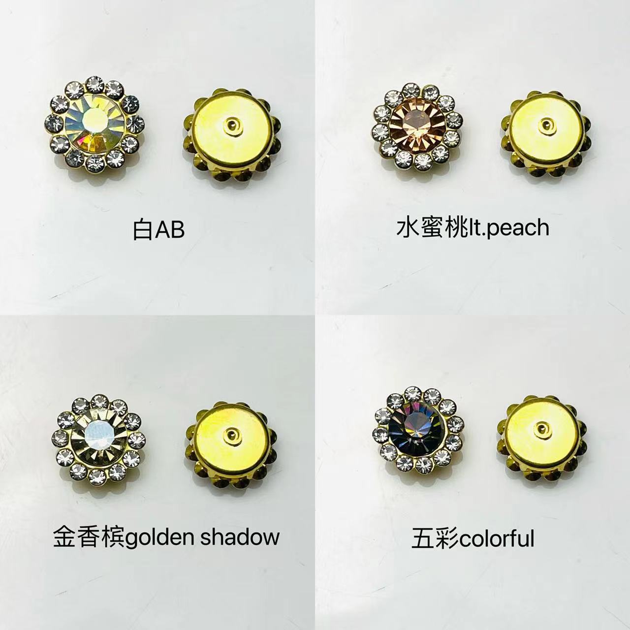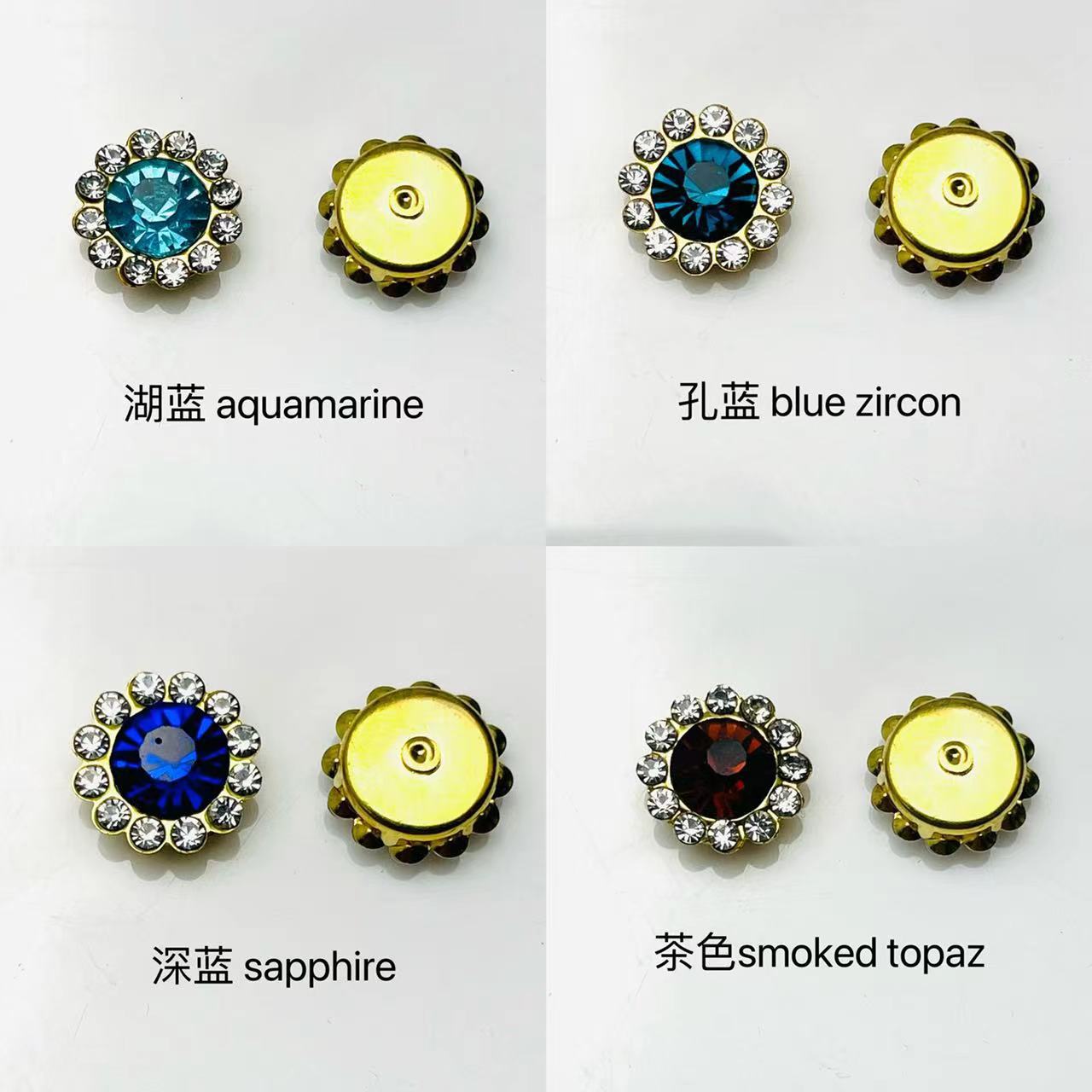 White diamond on gold, Gold background white ab, Gold background crystal yellow, Gold bottom lake blue, Gold b...