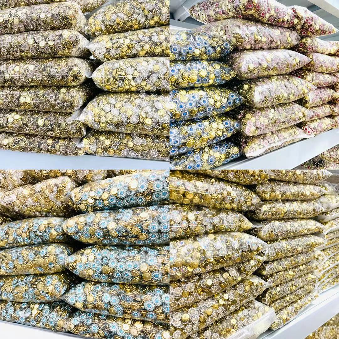 Flor de Doble Capa Pedrería Girasol Flor de Ciruelo Diamante Plato de Flor Pedrería Cosida a Mano Venta al por Mayor DIY Accesorios para el Cabello Accesorios para Ropa