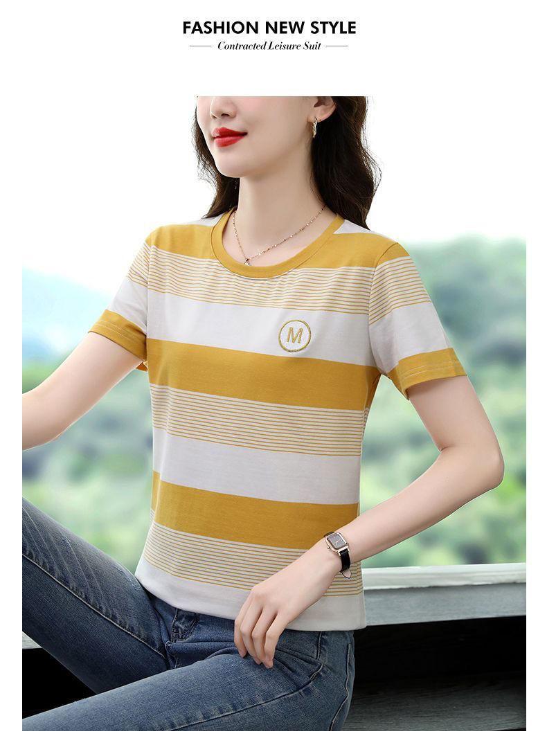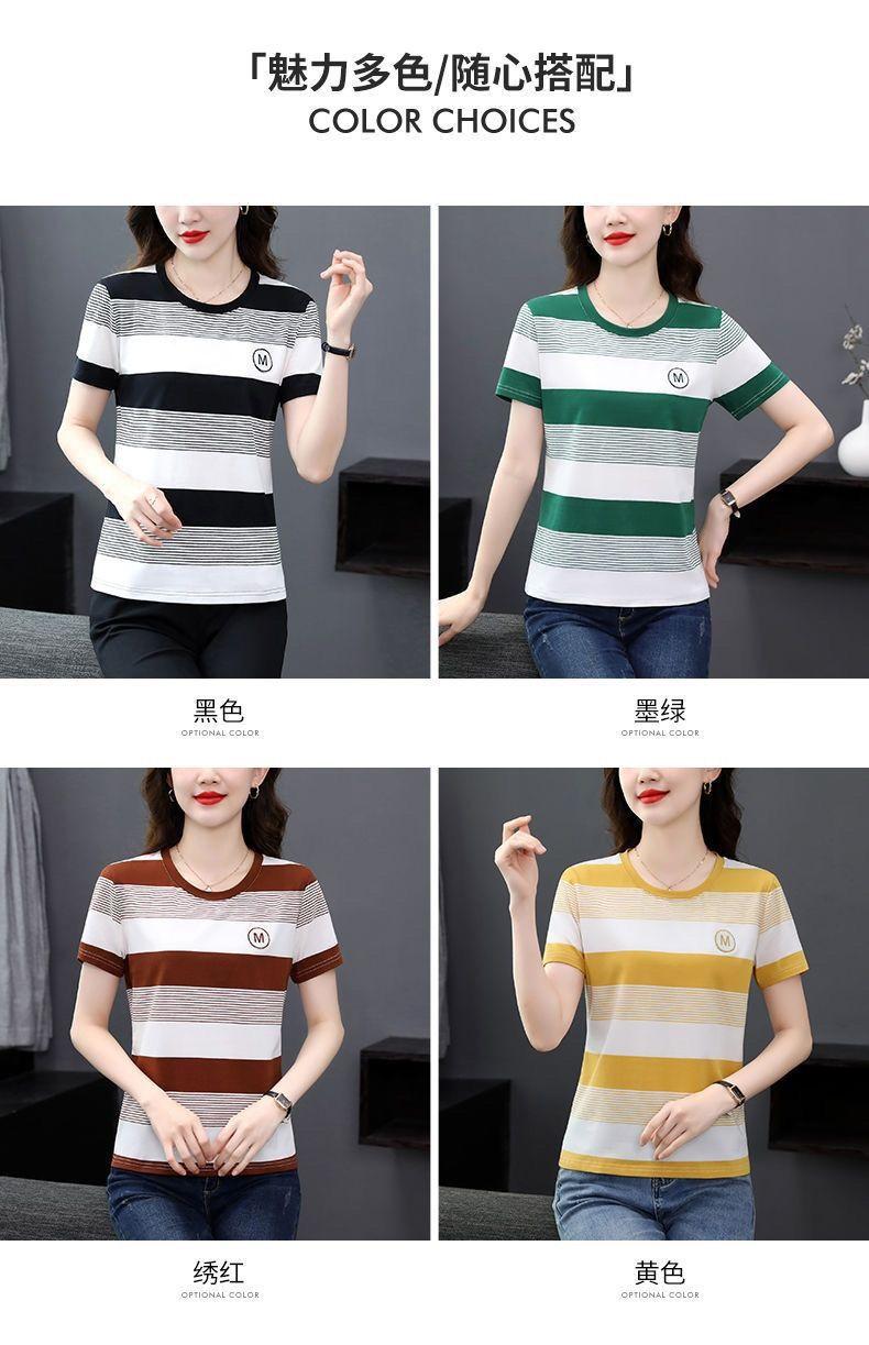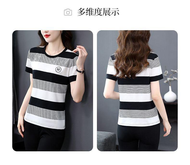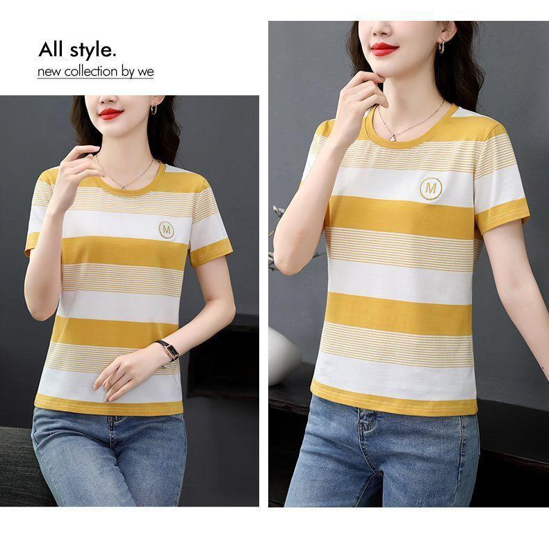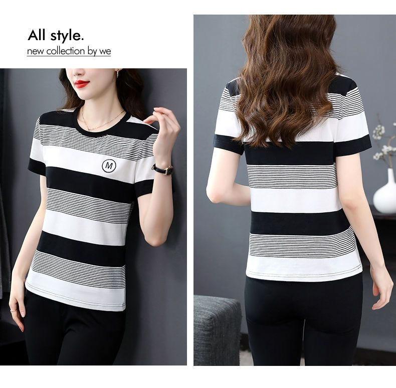 Compra Camiseta de Rayas de Manga Corta para Mujer 2024 Nueva Parte Superior Suelta Talla Grande Camiseta Pequeña para Mujer Coreana Suelta Ajustada al por mayor en Joom.pro