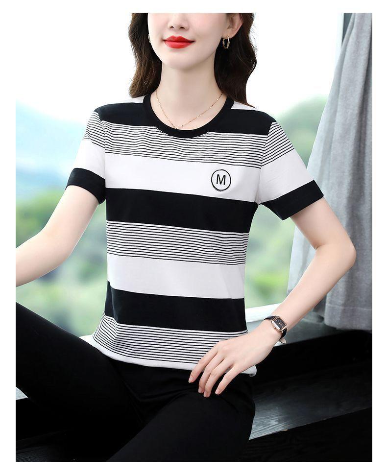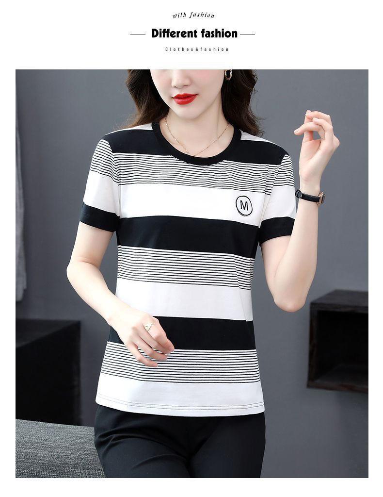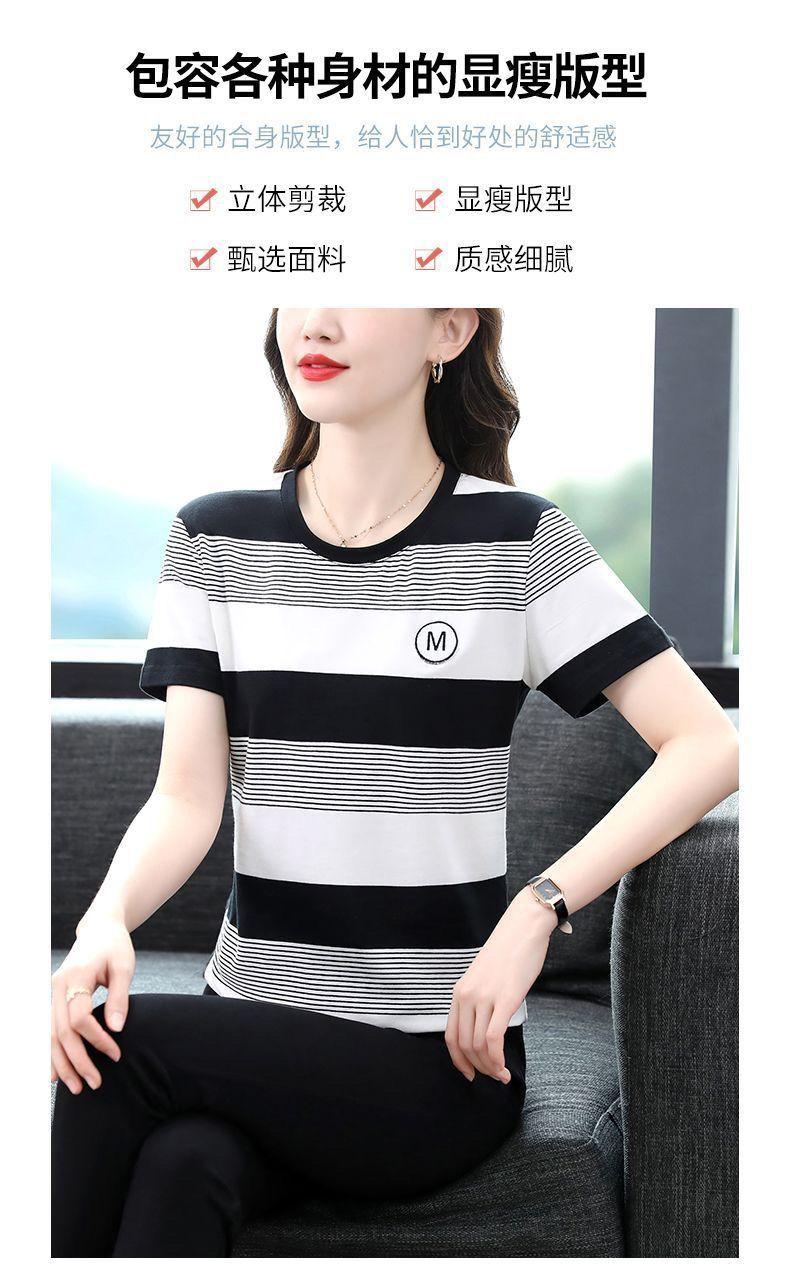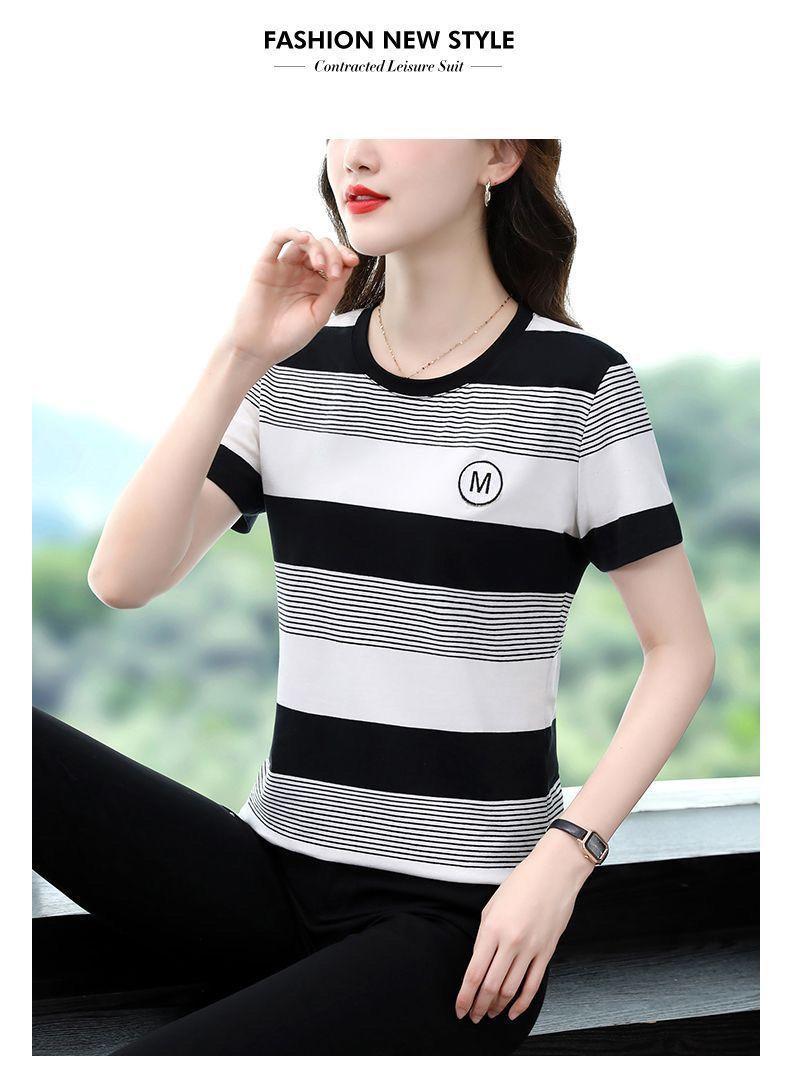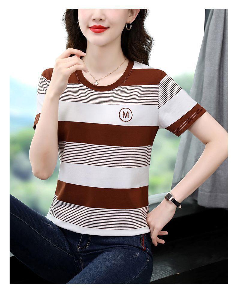 Compra Camiseta de Rayas de Manga Corta para Mujer 2024 Nueva Parte Superior Suelta Talla Grande Camiseta Pequeña para Mujer Coreana Suelta Ajustada al por mayor en Joom.pro
