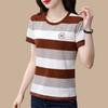Camiseta de Rayas de Manga Corta para Mujer 2024 Nueva Parte Superior Suelta Talla Grande Camiseta Pequeña para Mujer Coreana Suelta Ajustada