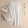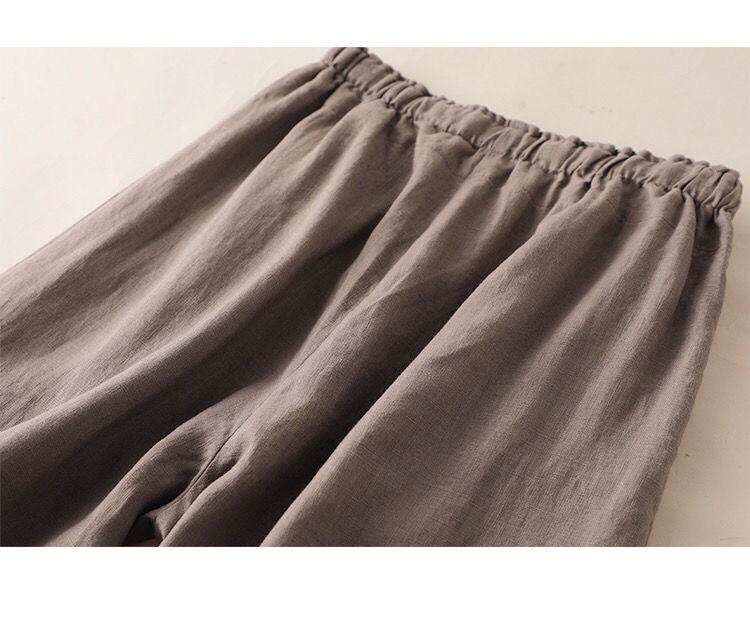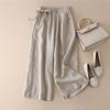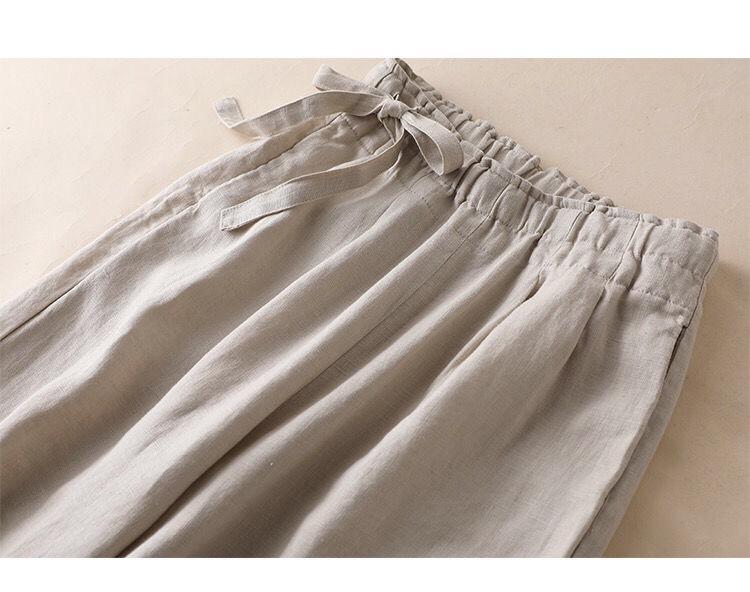 Primavera y Verano 2023 Nueva Llegada Pantalones Recortados de Pierna Ancha para Mujer Algodón y Lino Cintura Alta con Cordones Laterales Vintage Artísticos Elásticos Pantalones Casuales para Mujer