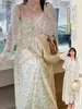 Vestido de Mujer Retro Francés con Tirantes Malla Irregular Estampado Verano Delgado Protección Solar Cárdigan Traje de Dos Piezas