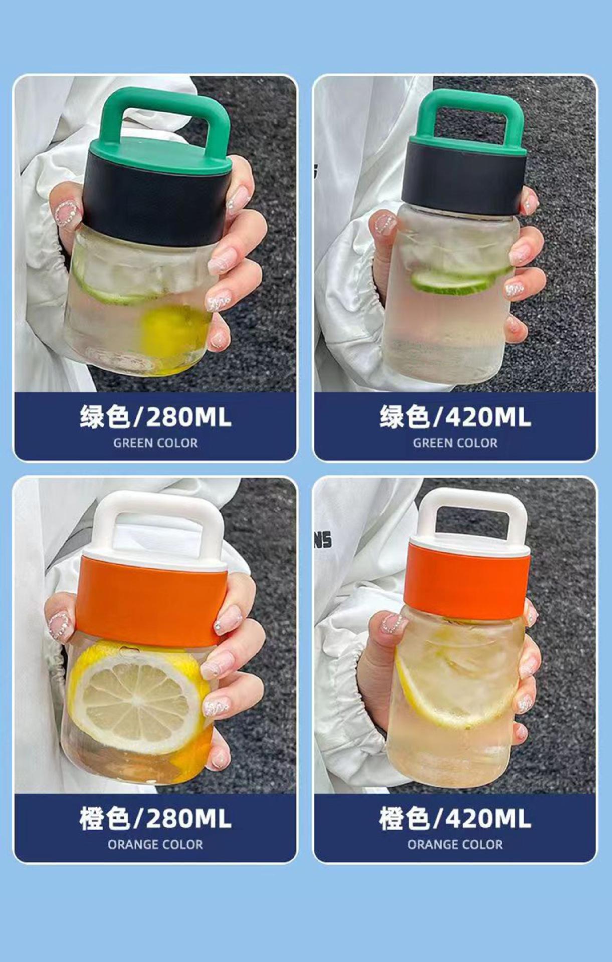 White lid + glass, Black lid + glass, Orange lid + glass, Pink lid + glass