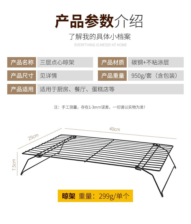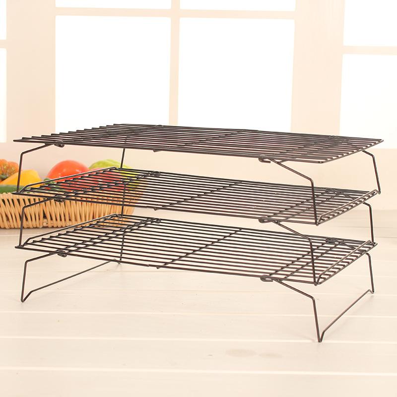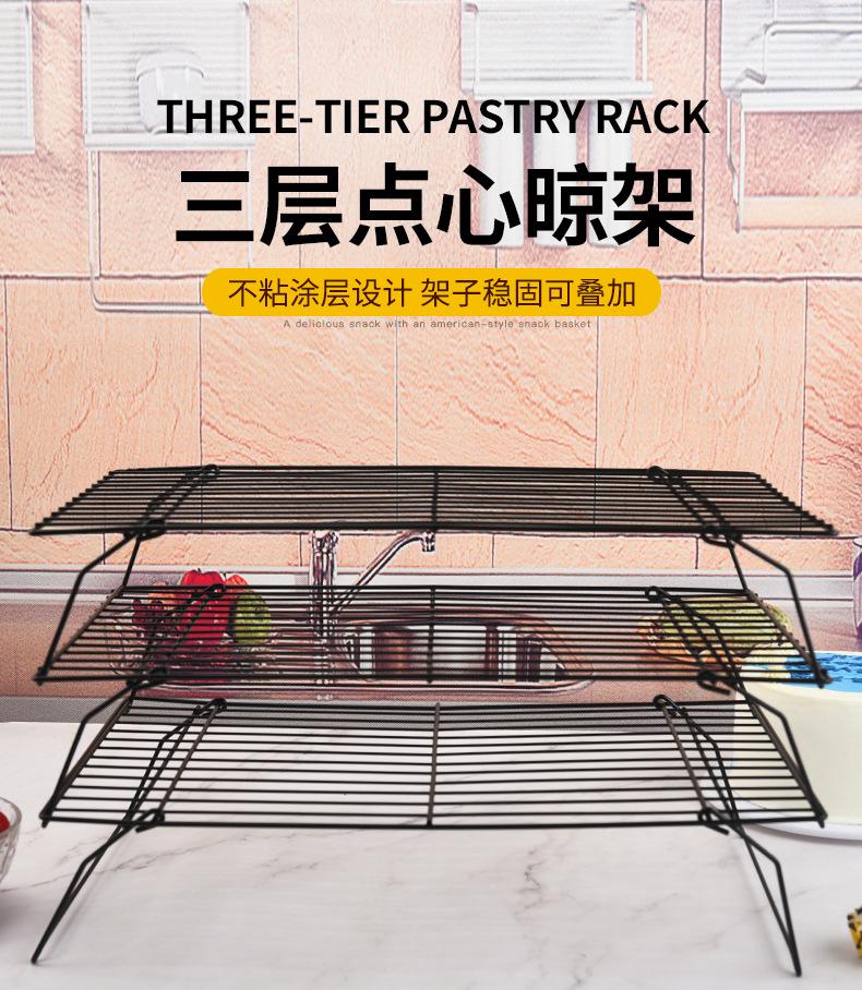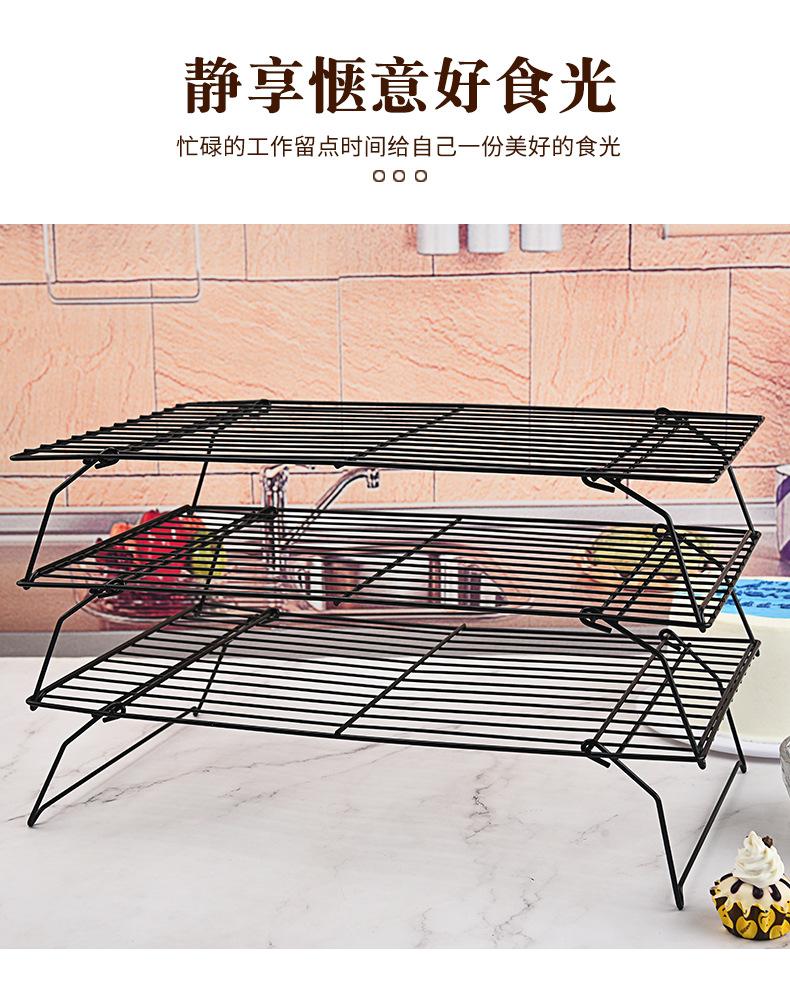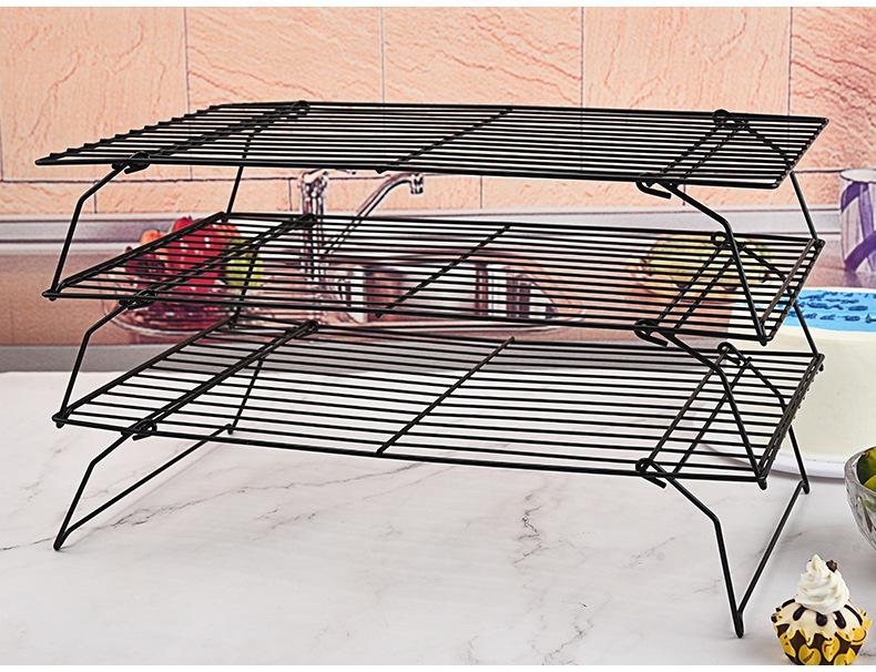 Nuevo Rejilla para Enfriar Pasteles de 3 Capas Plegable Rejilla para Enfriar Pan Rejilla para Secar Galletas Negro Antiadherente Transfronterizo