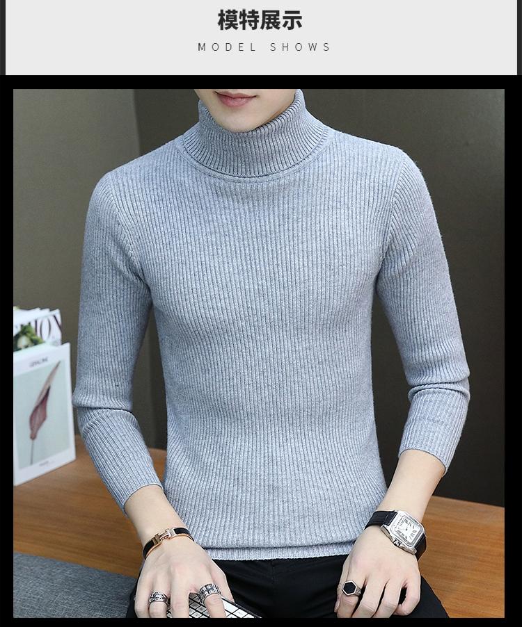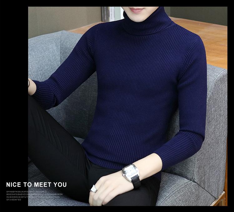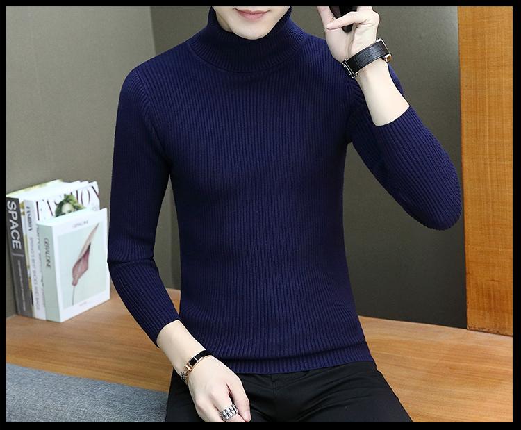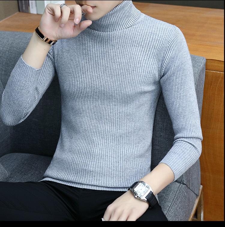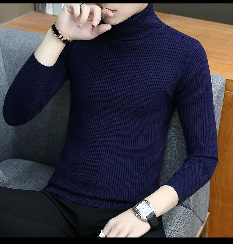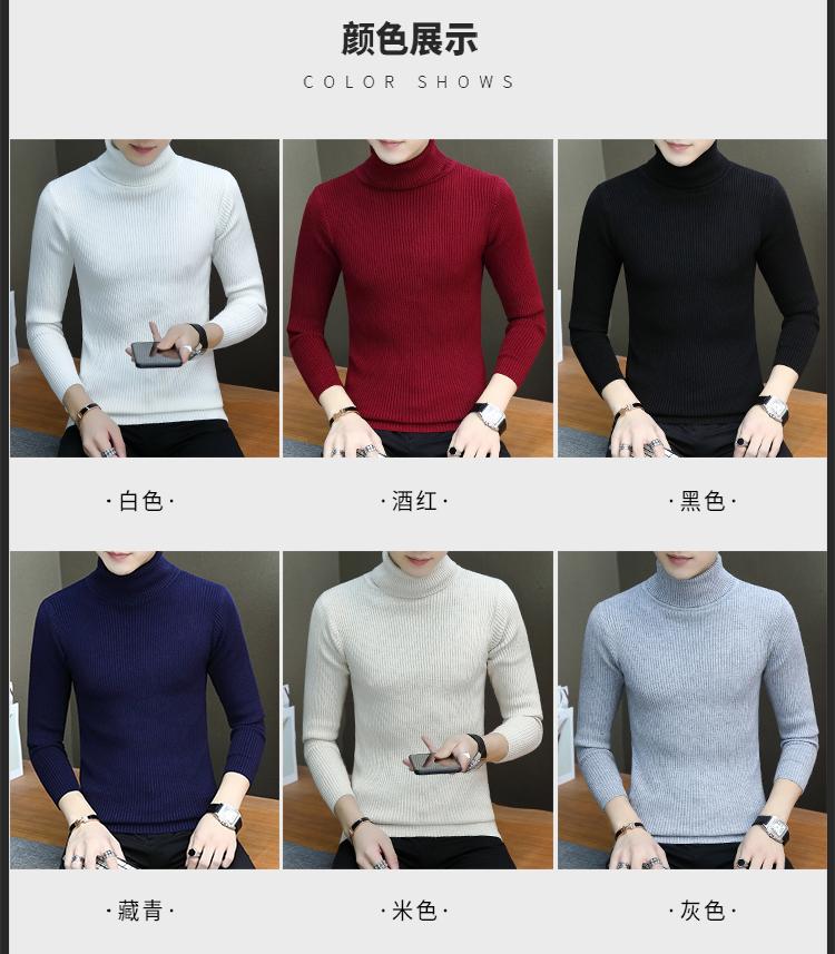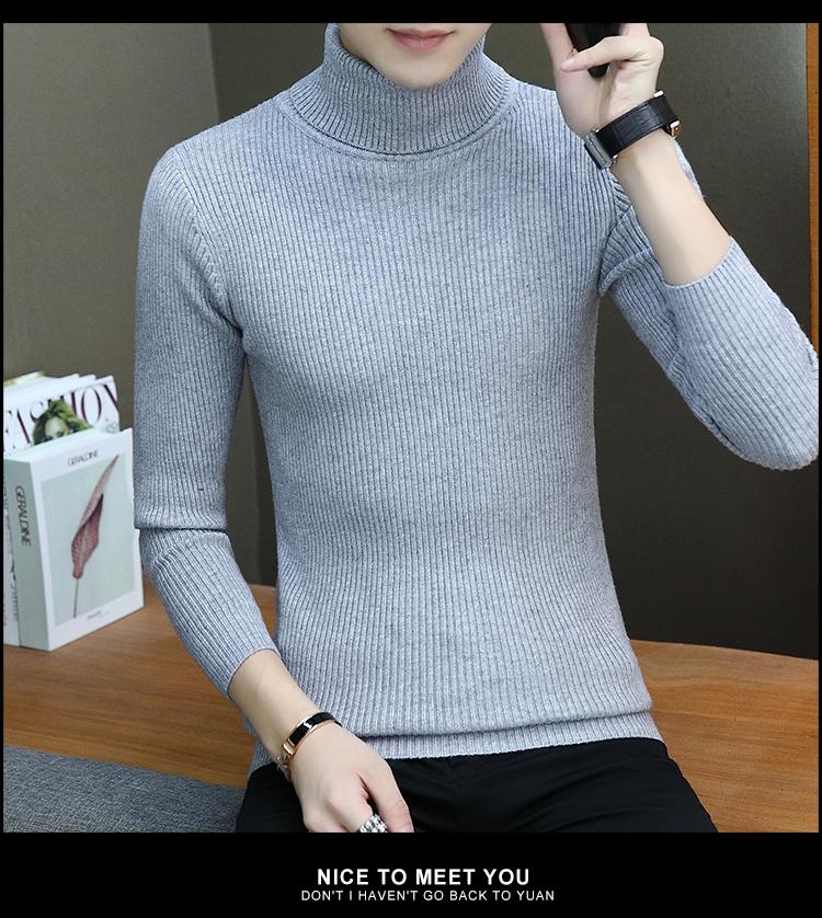 Otoño e invierno nuevo suéter de cuello alto para hombre suéter moda juvenil casual coreano color sólido slim camisa base hombre