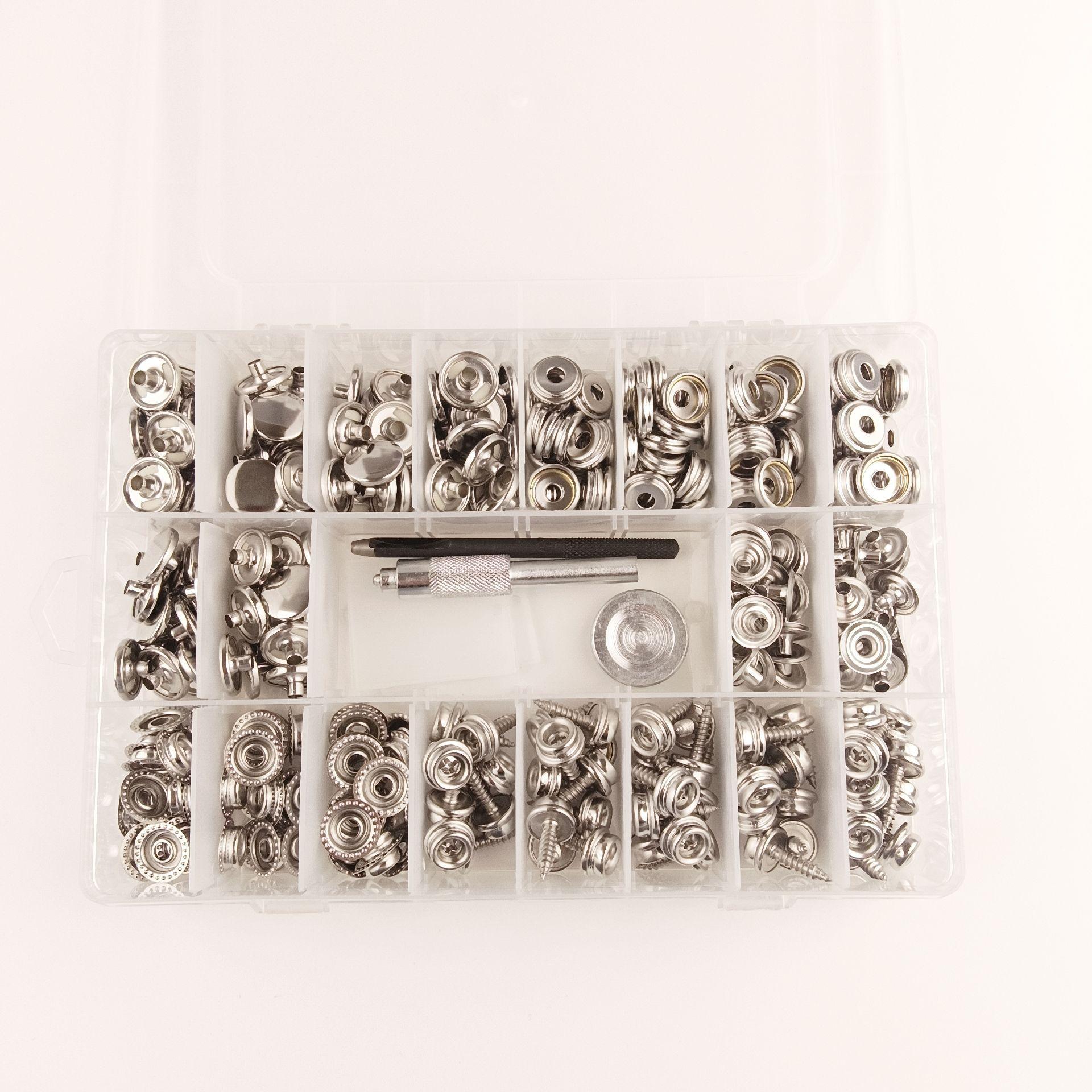 50 juegos de hebillas blancas grandes, 50 juegos de hebillas blancas grandes tipo tornillo, incluyendo juego de 3 piezas de herramienta especial 201# * caja de almacenamiento