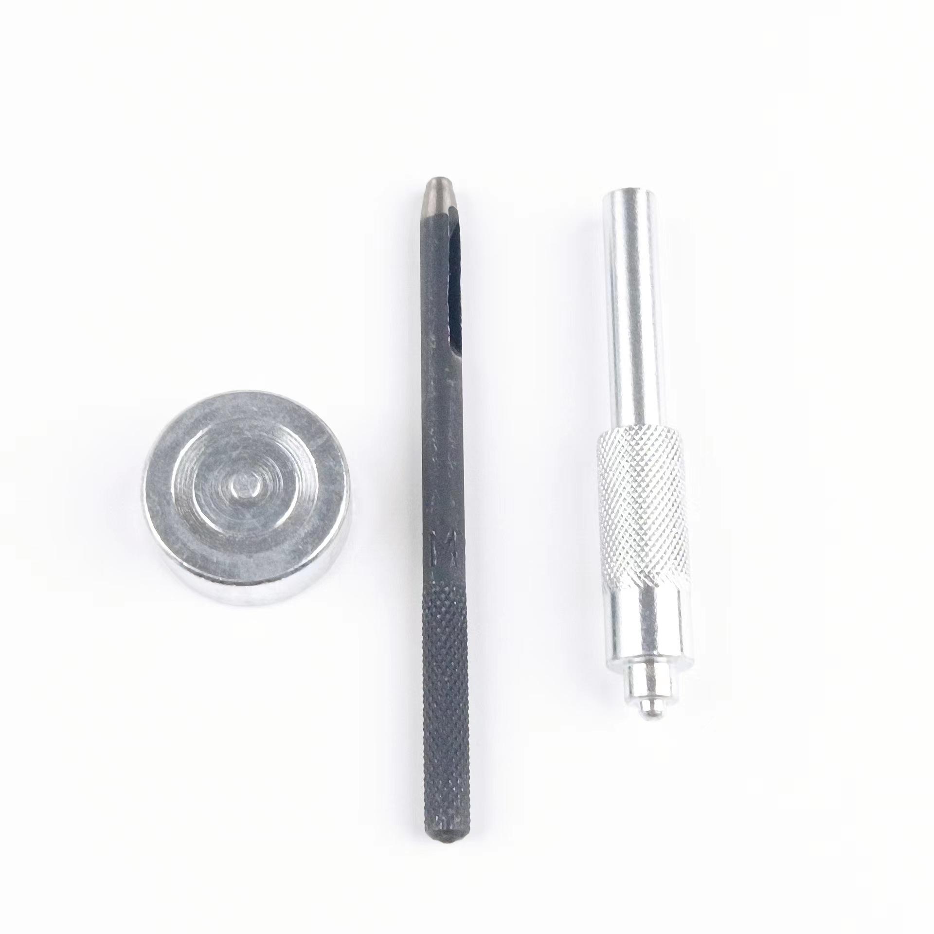 Detalles: 50 juegos de hebillas grandes blancas, 50 juegos de hebillas grandes blancas atornillables, incluyendo juego de 3 piezas de herramienta especial 201#, perforadora de 3 mm * 1 pieza, caja de almacenamiento