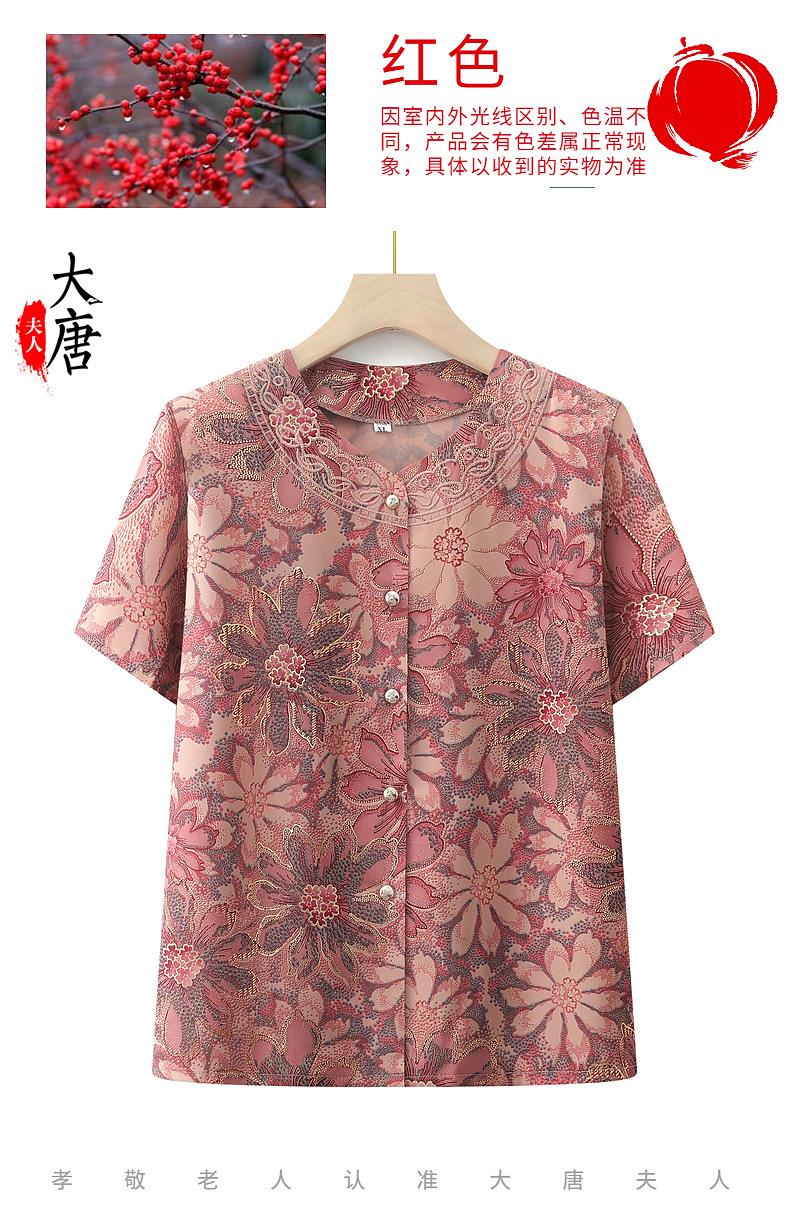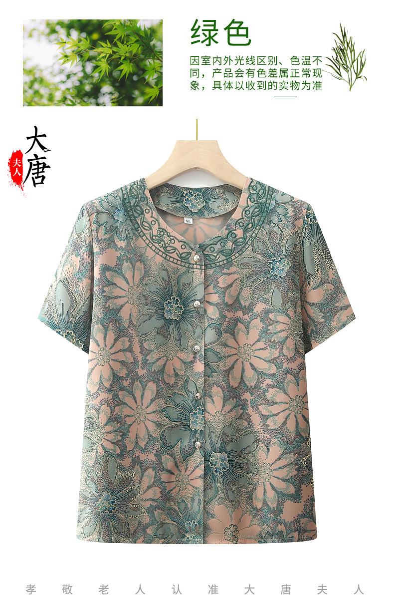 Camisetas de Manga Corta para Mujeres de Mediana Edad y Mayores, Camisetas Florales de Manga Corta de Verano para Abuela, Tops Holgados para Personas Mayores, Moderno