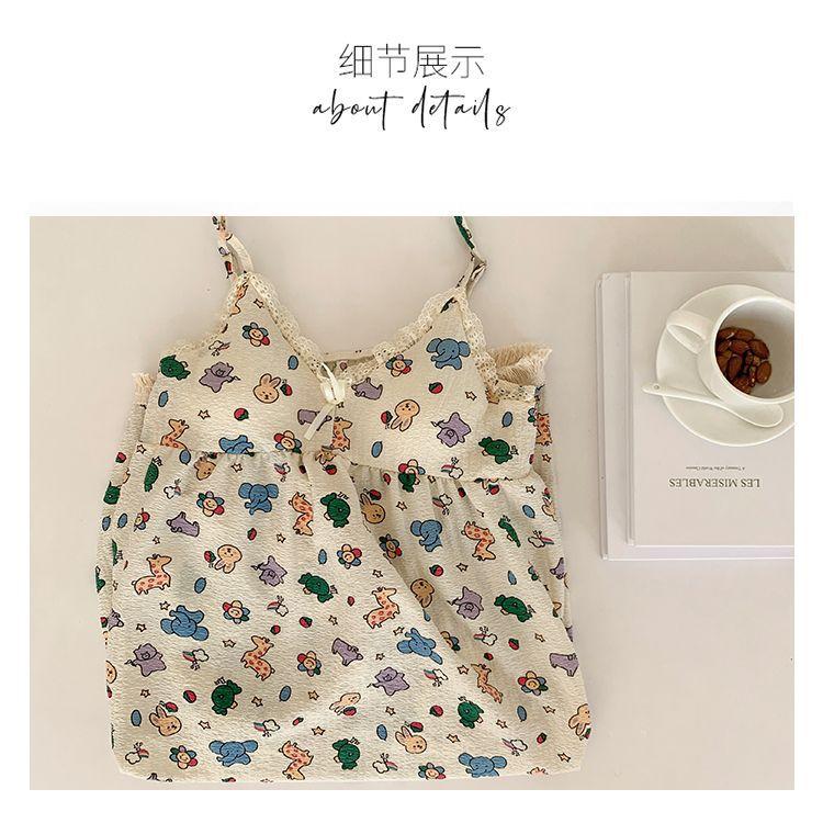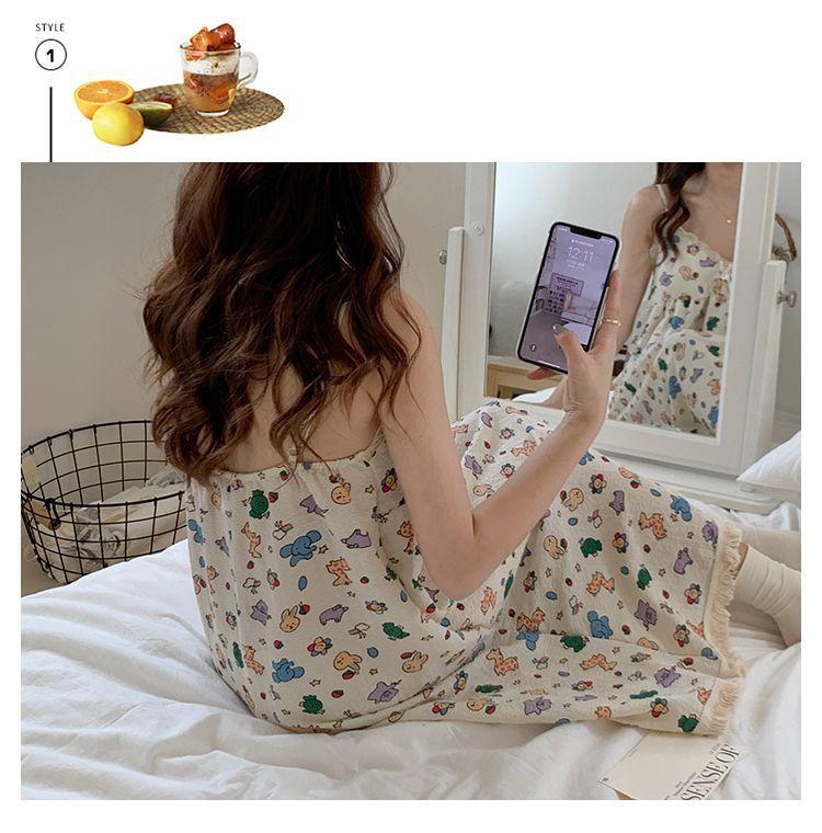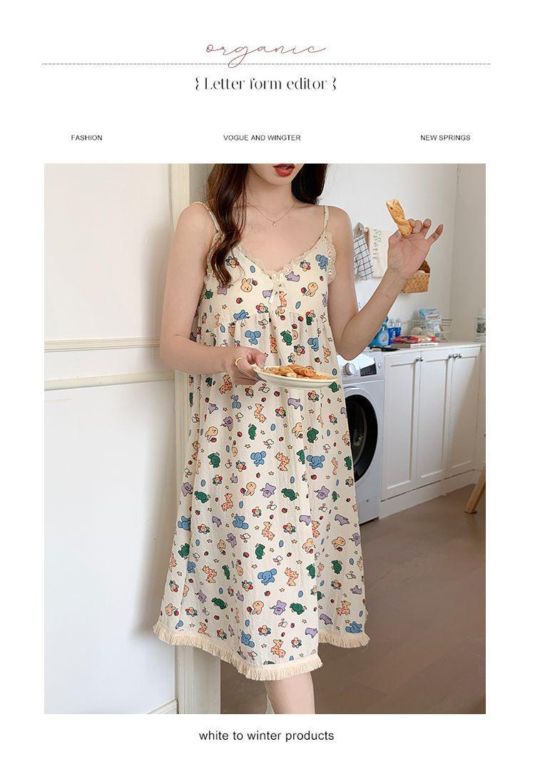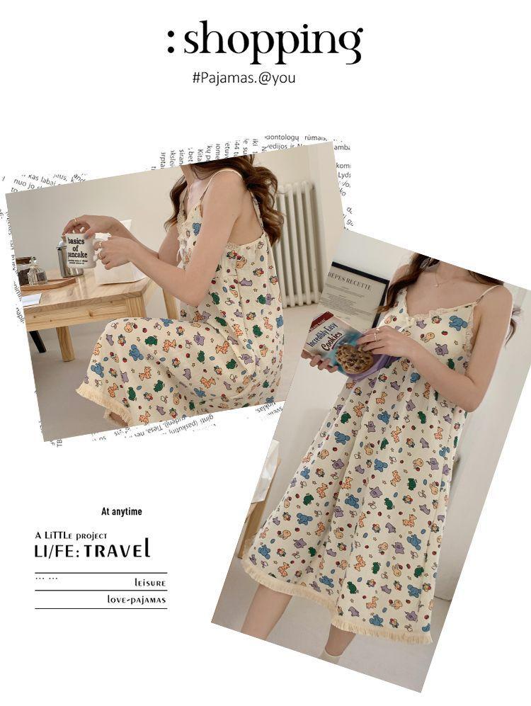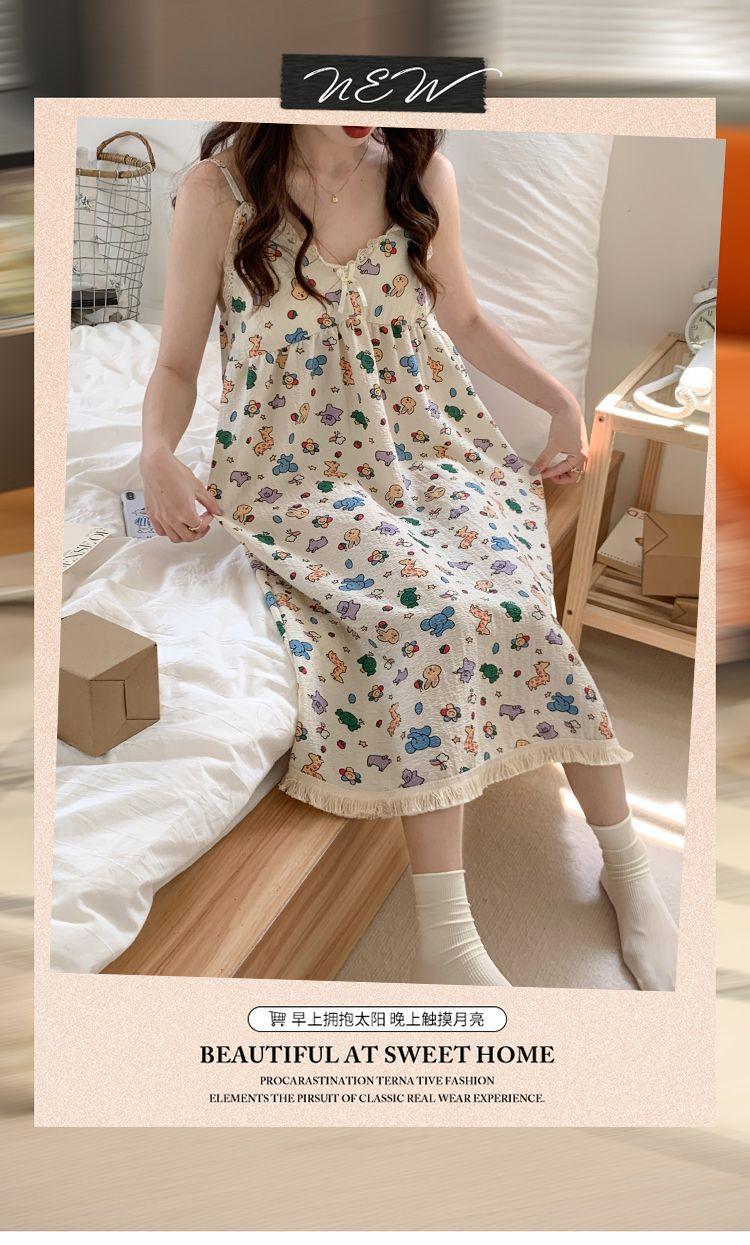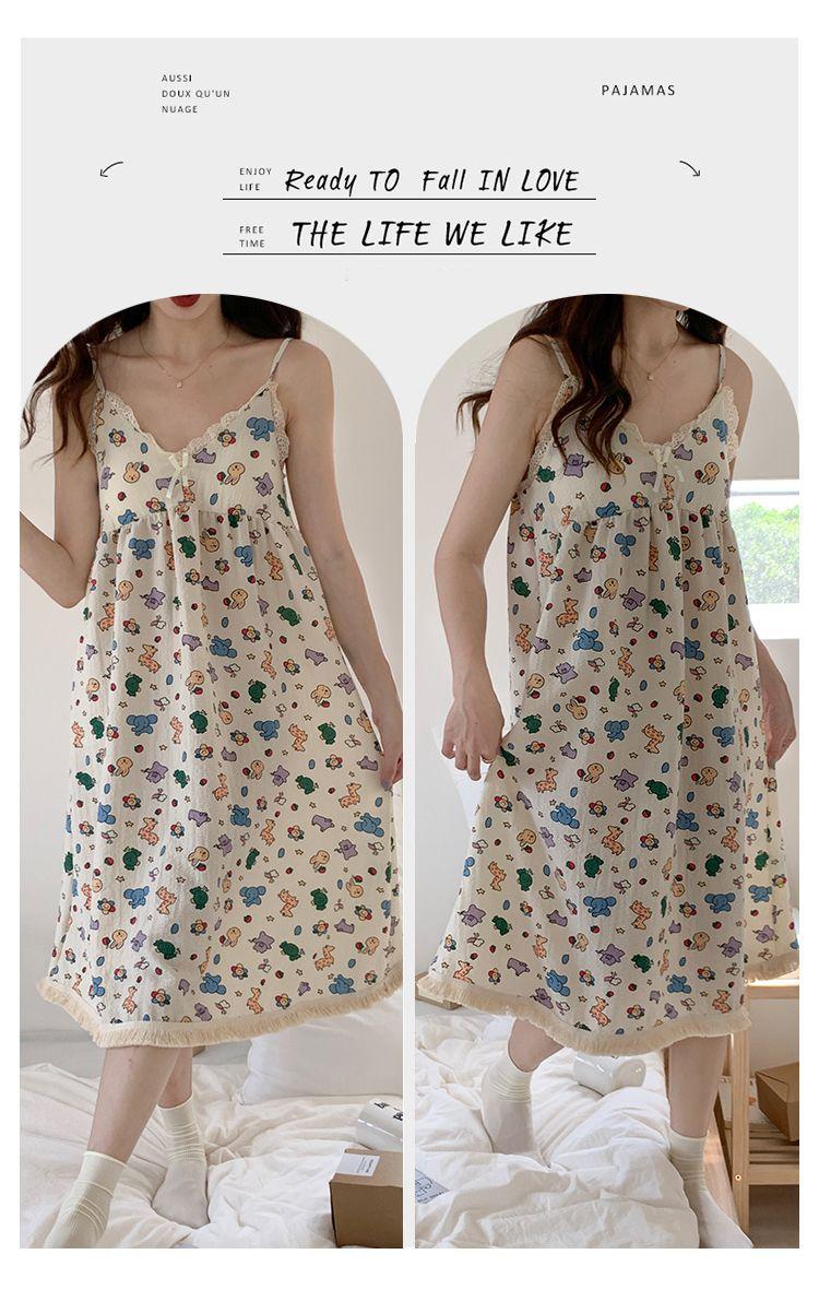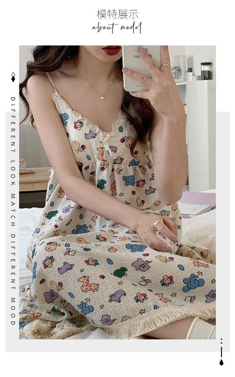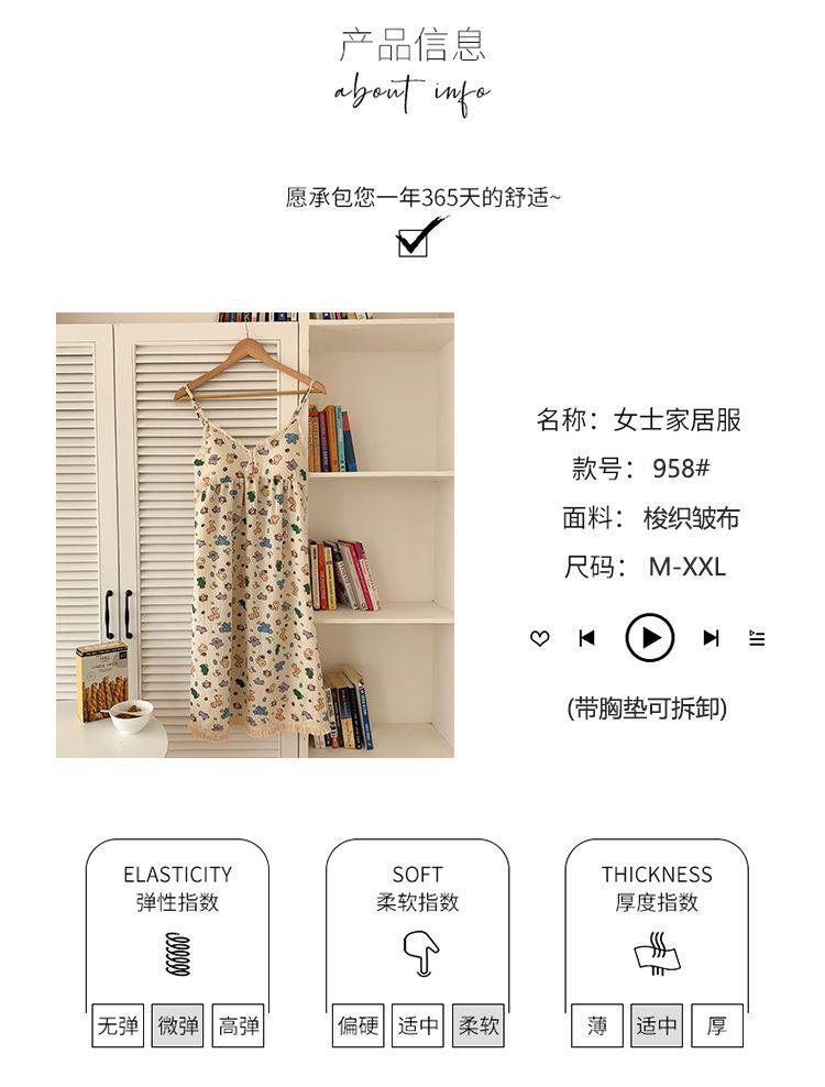 Camisón Verano Mujer Dulce Tirantes Almohadilla en el Busto Algodón Burbuja Pijama Mujer Verano Lindo Dibujo Animado Ropa de Casa Venta al por Mayor