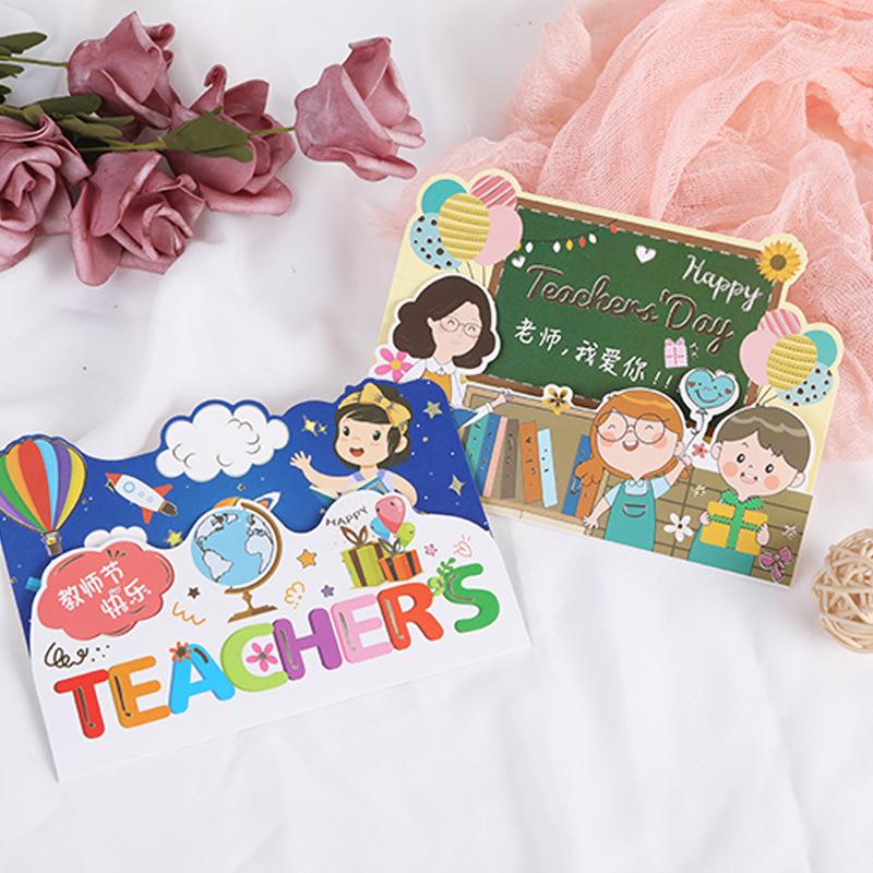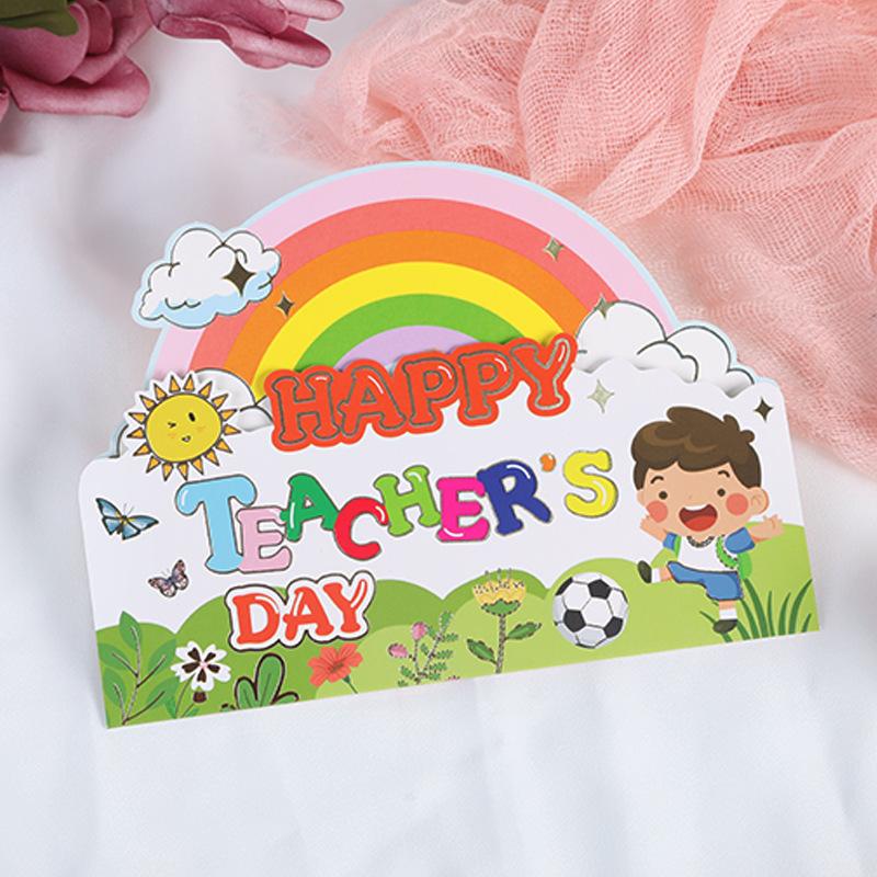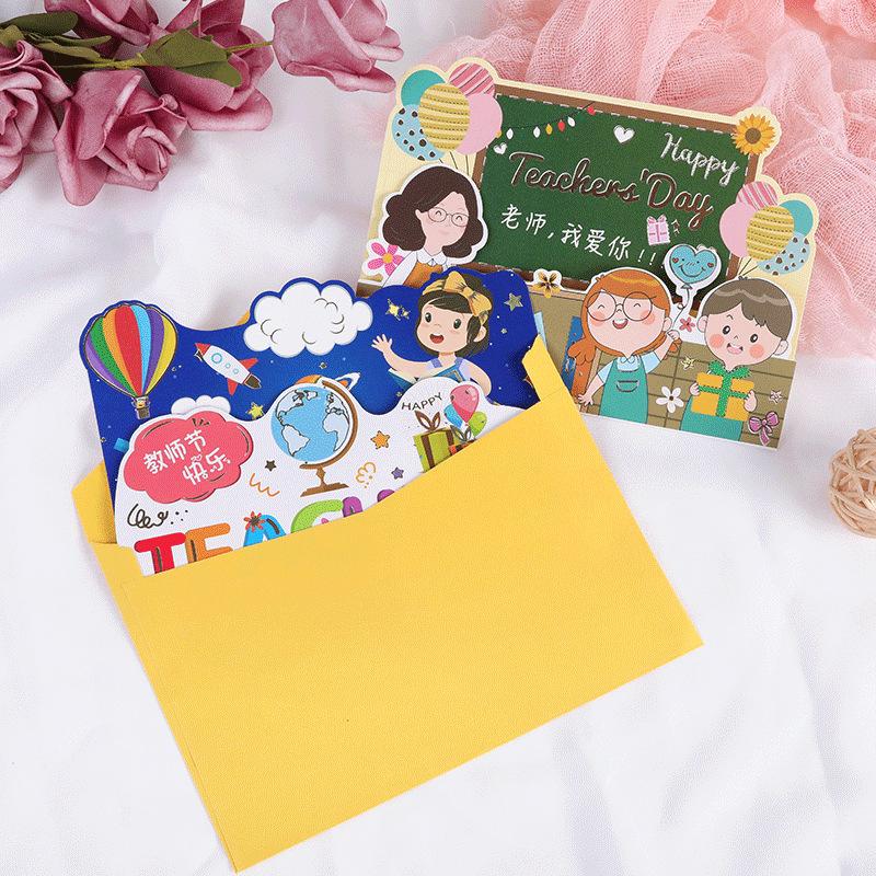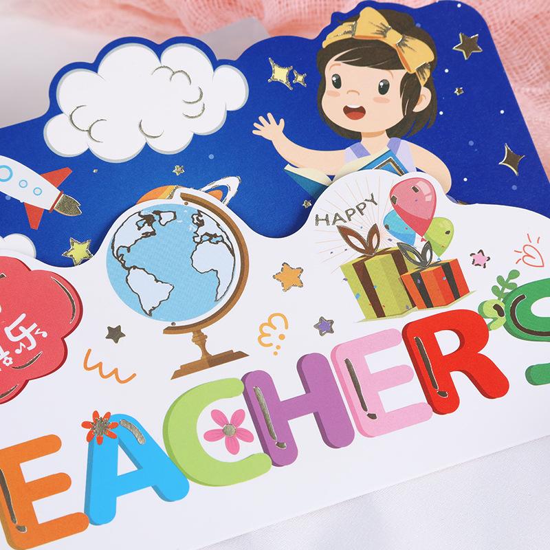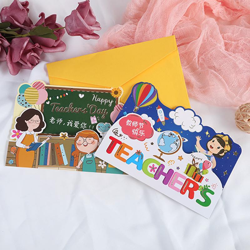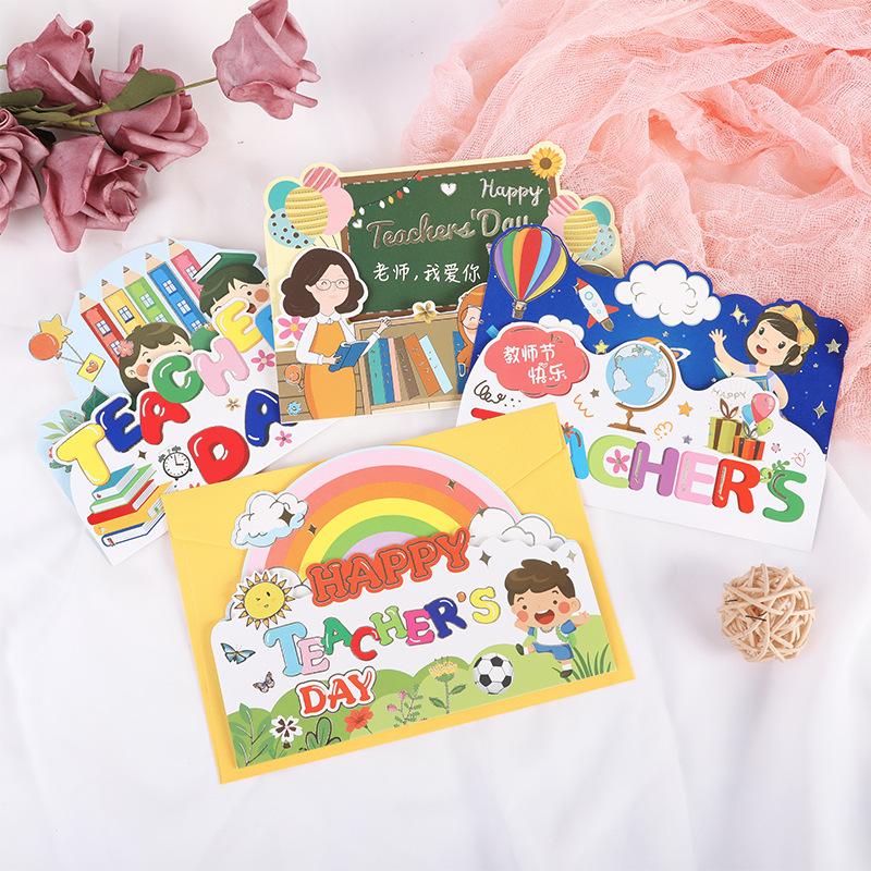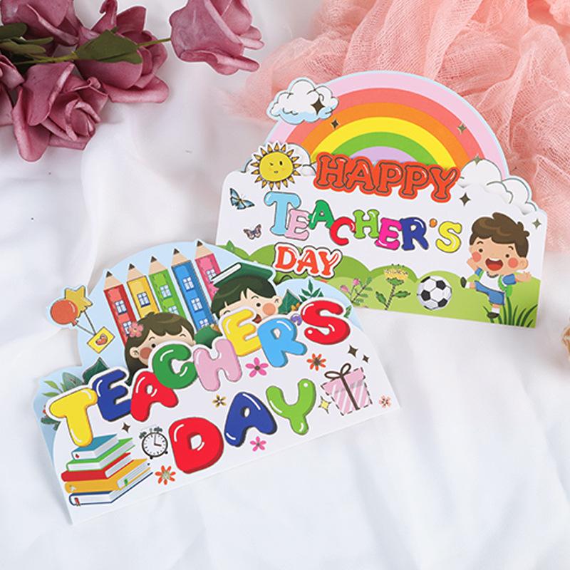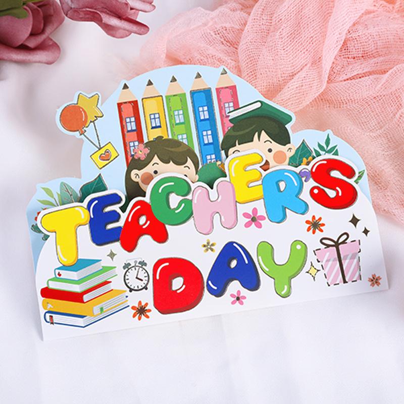 Nuevo Día del Maestro dorado tarjeta creativa regalo de graduación bendición estudiantes de primaria envían tarjeta de felicitación de agradecimiento al maestro simple