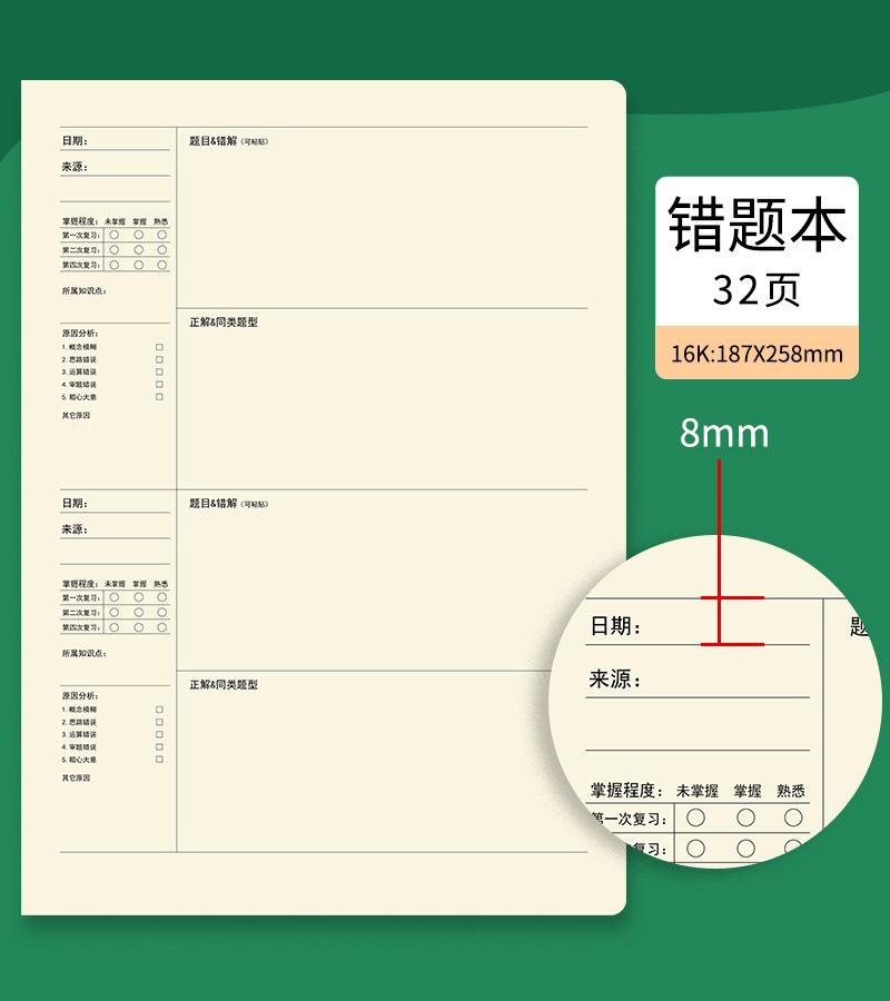 Chenguang 16k cuaderno de ejercicios para estudiantes texto inglés matemáticas física material historia y política libro de preguntas incorrectas
