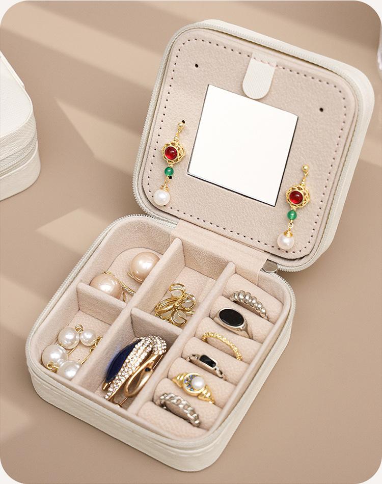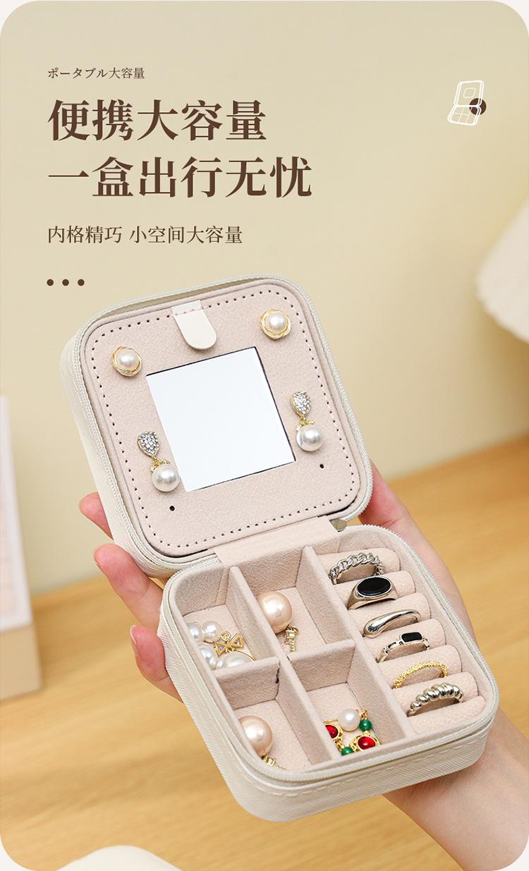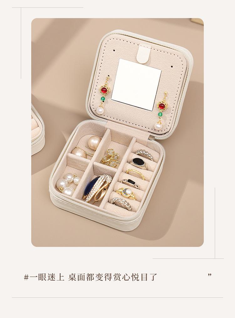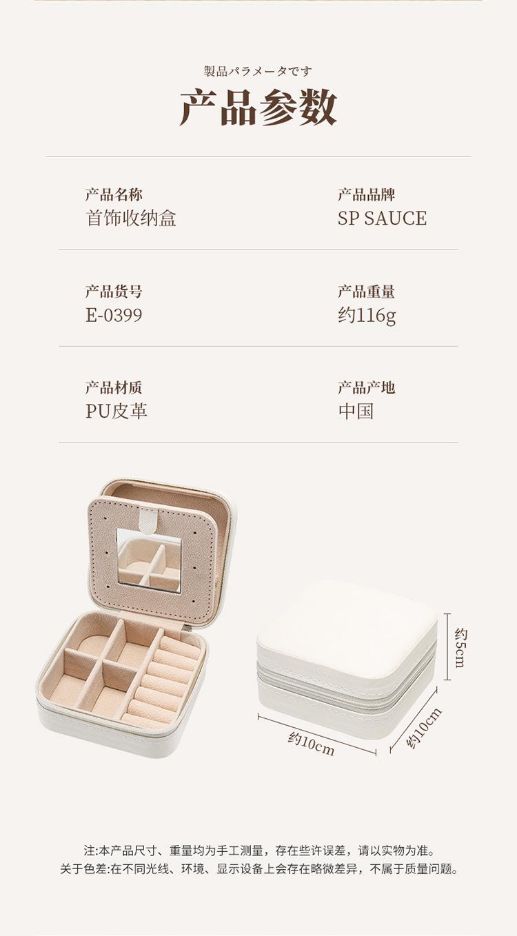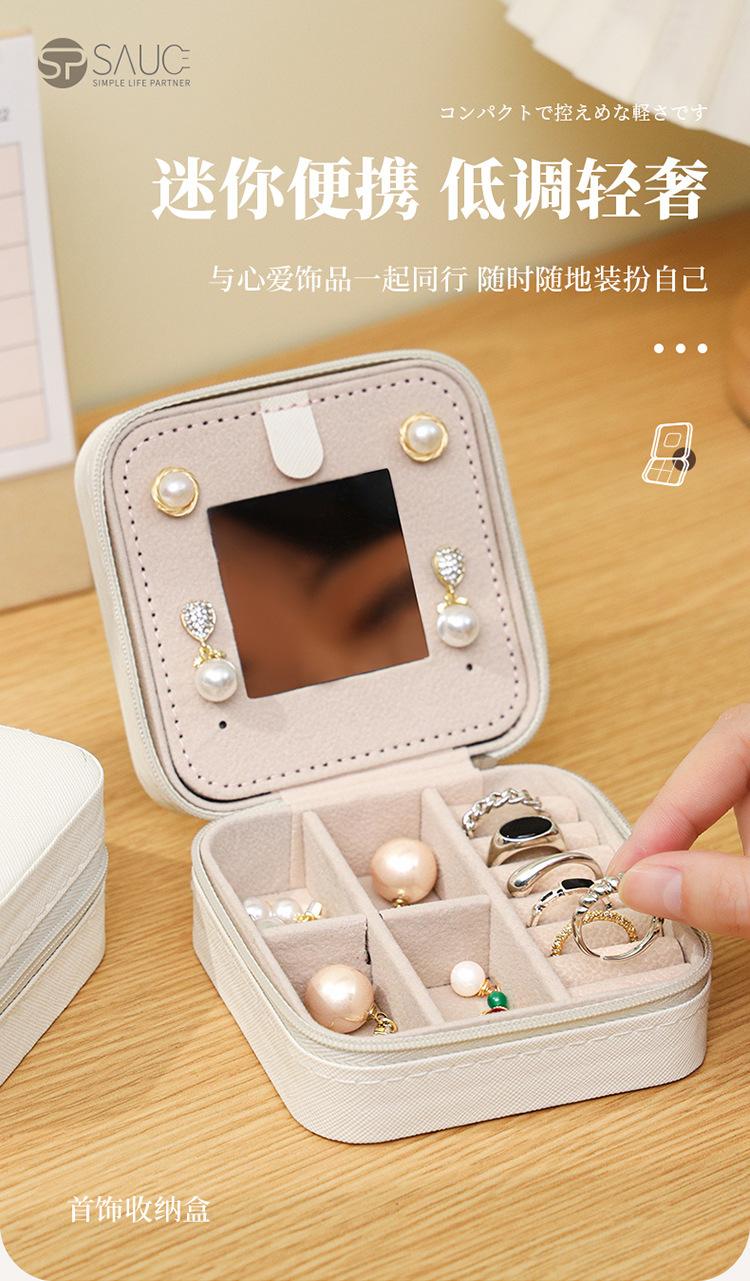 Caja de Joyería SP SAUCE con Espejo Caja de Almacenamiento Mini Portátil Caja para Aretes Exquisita Franela de Alta Gama Collar Caja para Manoset