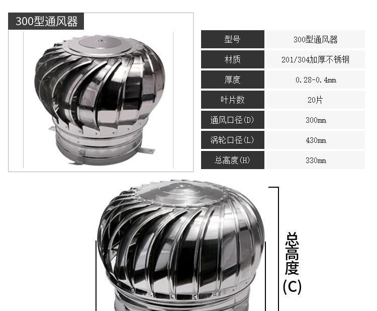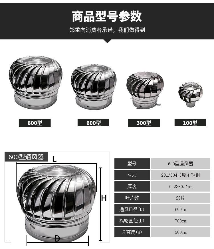 201 Ventilación de Techo Bola Extractor Eólico No Alimentado Campana de Viento Integrada Bajo Ruido Acero Inoxidable 304 Ventilador No Alimentado Venta al por Mayor