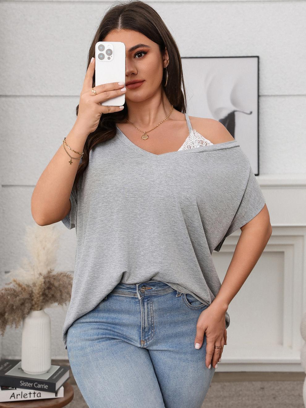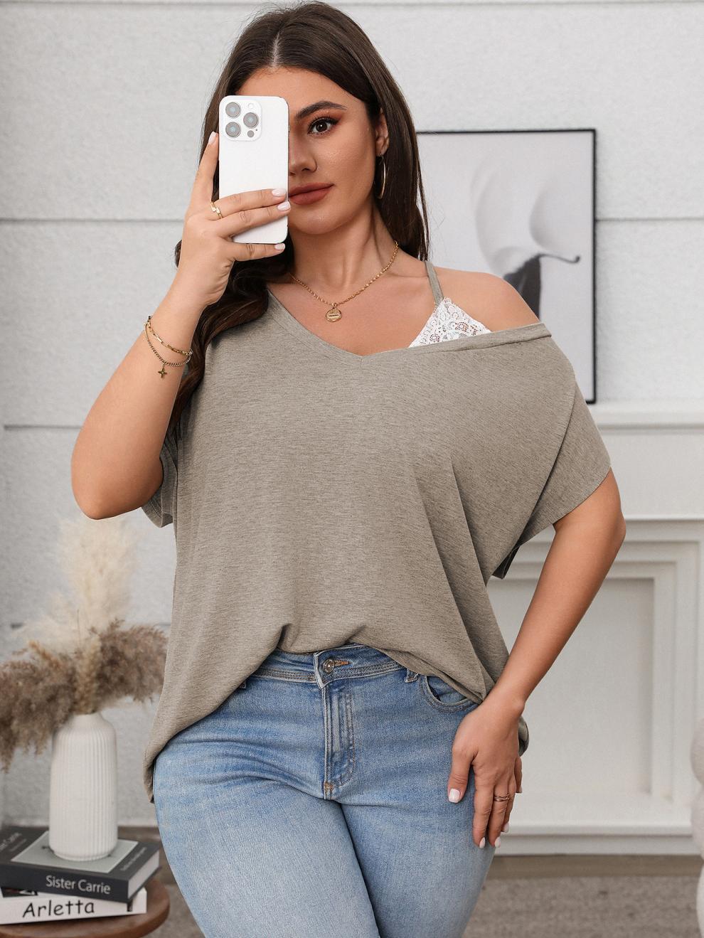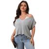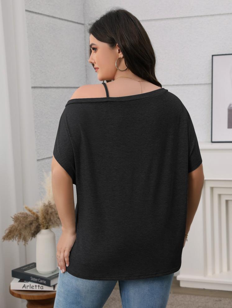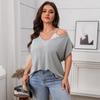 Tops Europeos y Americanos Transfronterizos Primavera Verano 2025 para Mujer Elegantes Casuales Color Puro Jersey Hombro Inclinado Manga Murciélago