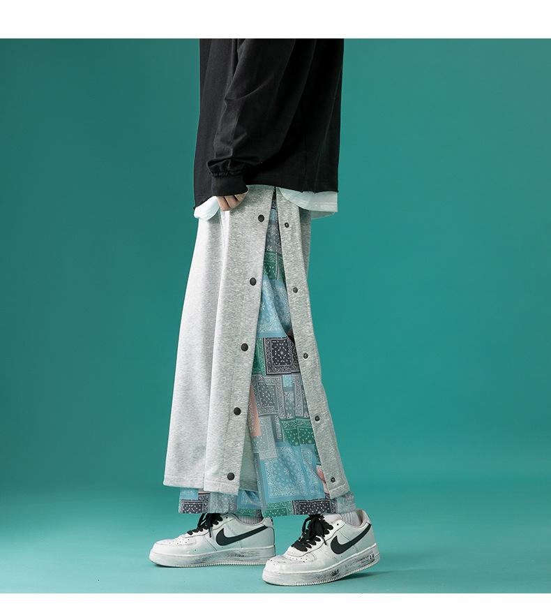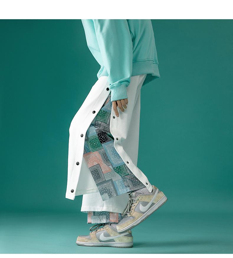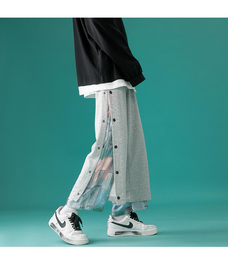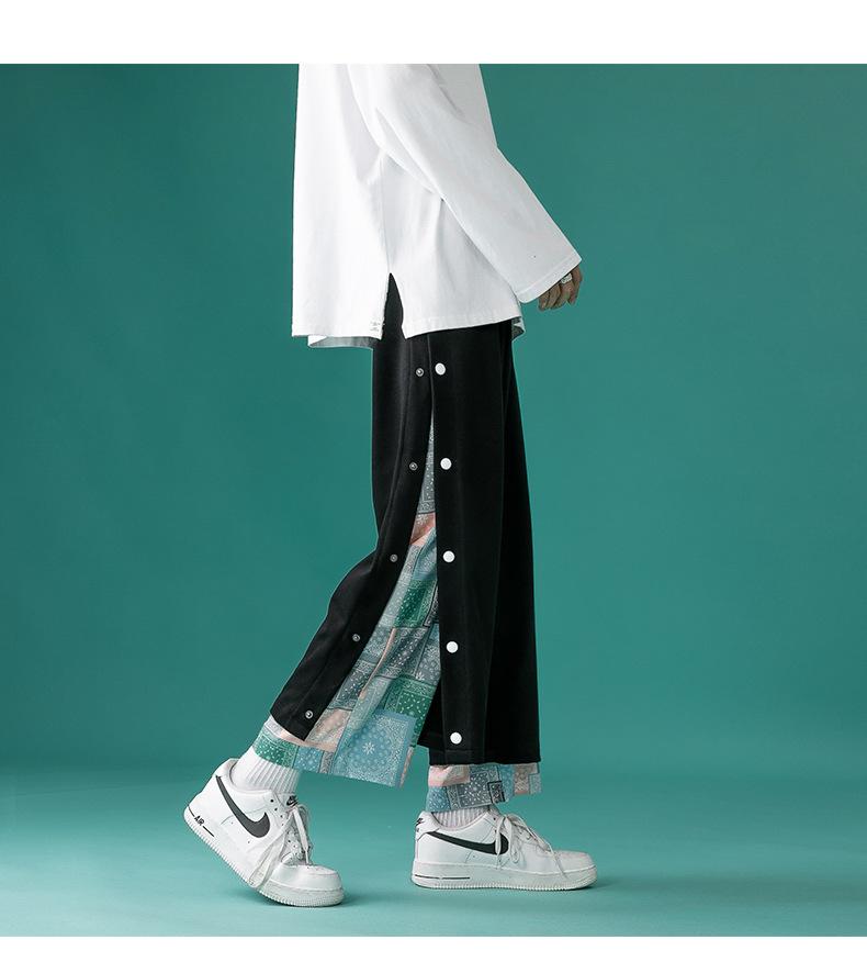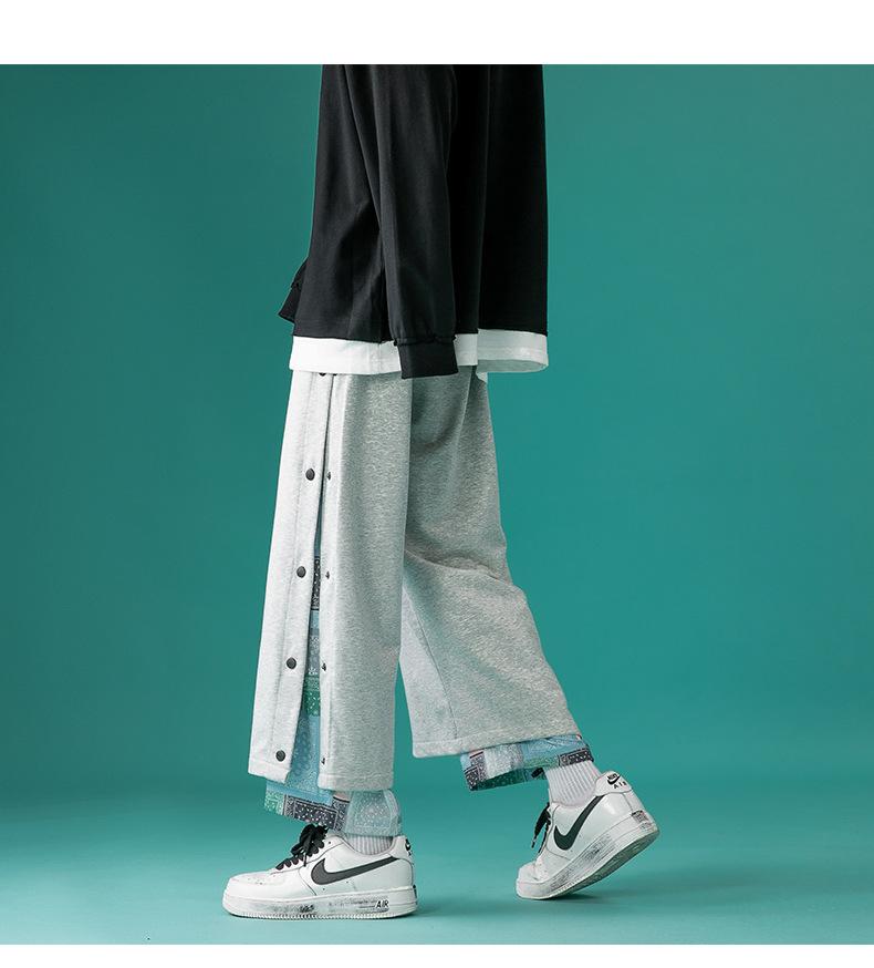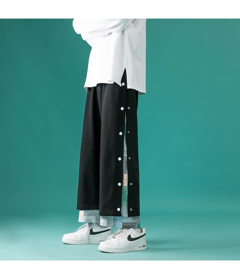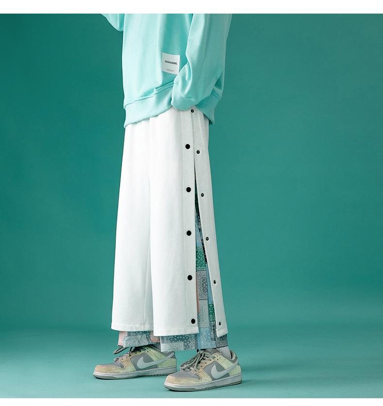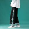 Pantalones de cachemira abotonados para hombre, estilo coreano moderno, talla grande, pantalones deportivos casuales, rectos, holgados, de pierna ancha, marca de moda, pantalones de chándal