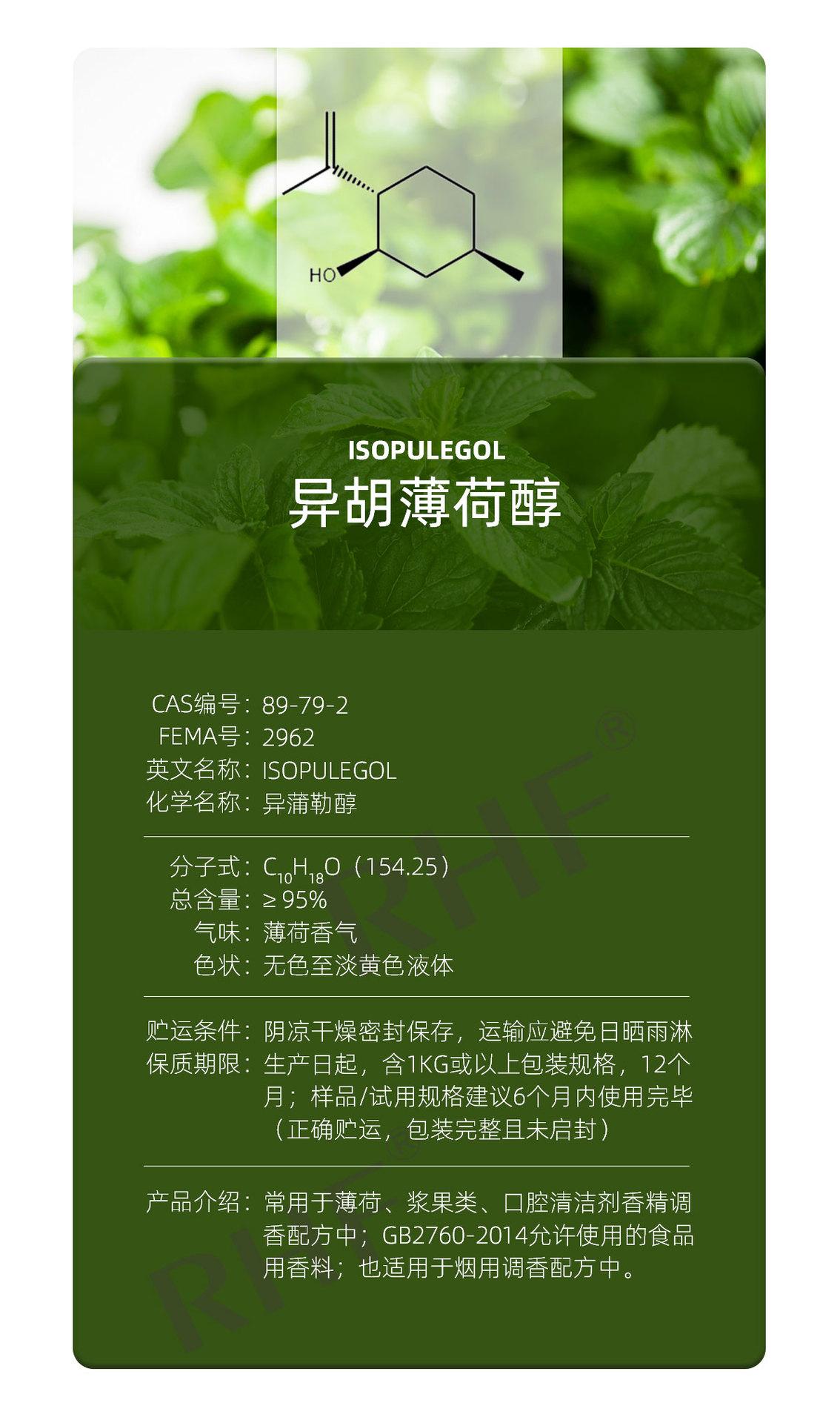 Rhf Fragancia Isopulegol Alta Pureza Agente Refrescante de Menta Penetración Fuerte Isopulegol 89-79-2