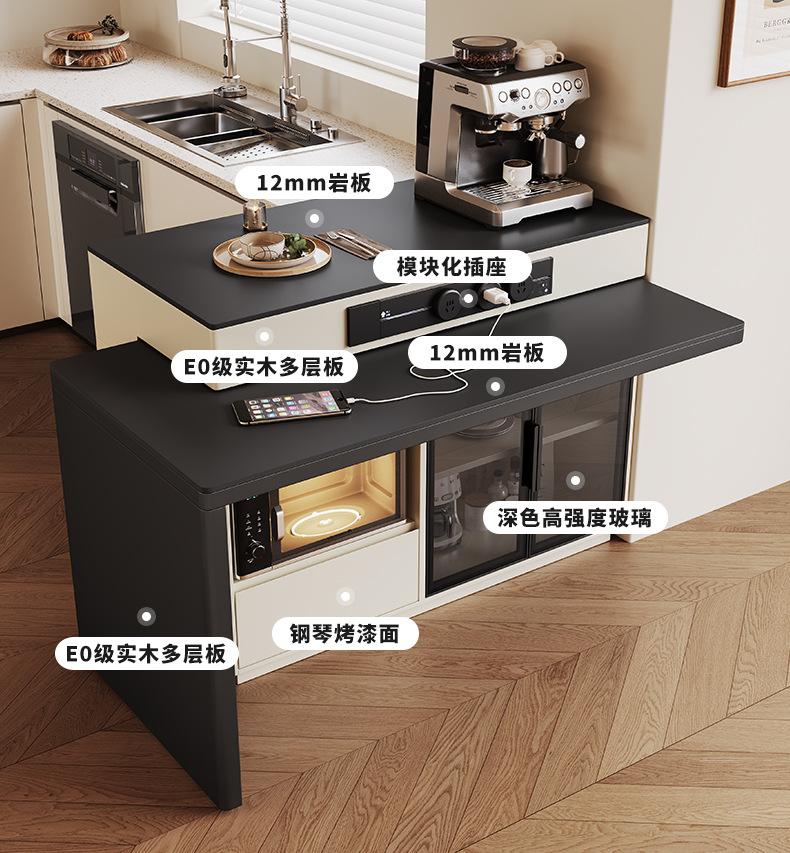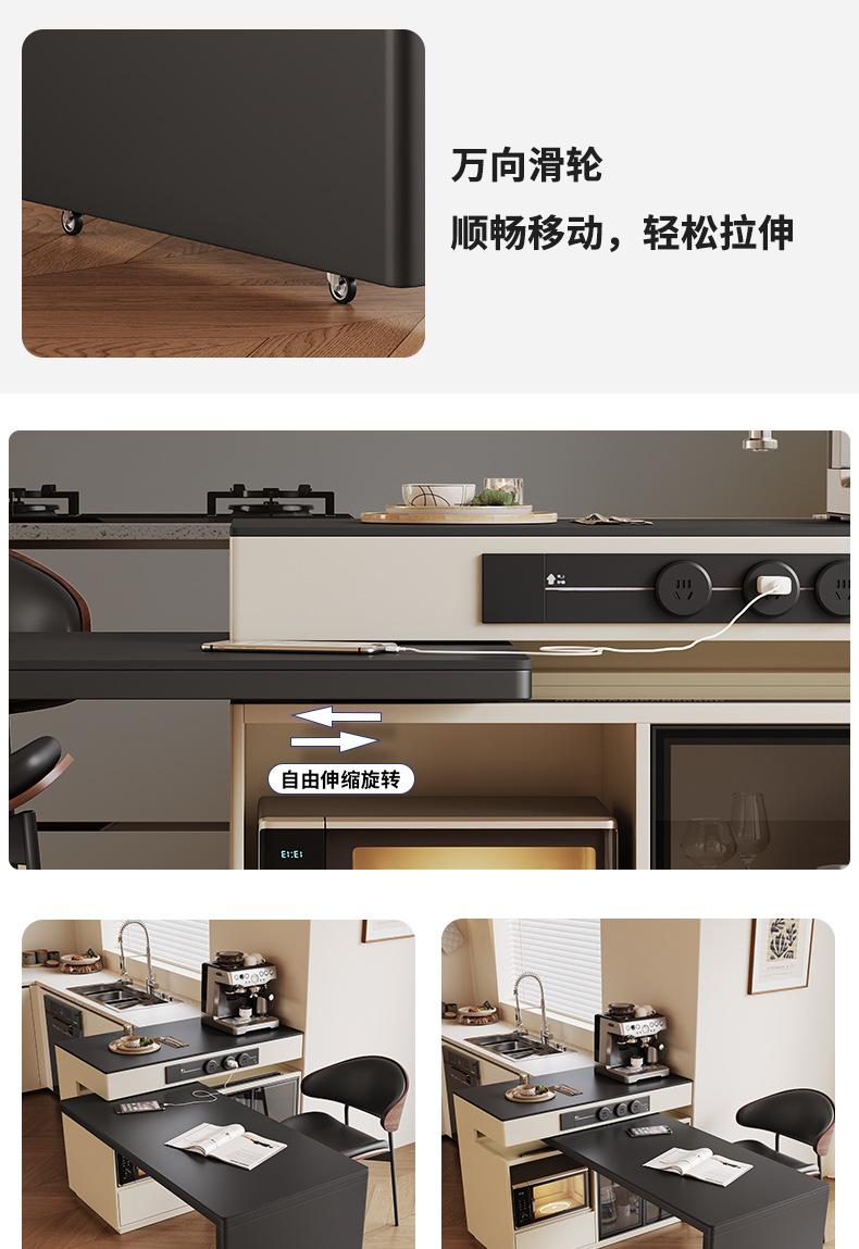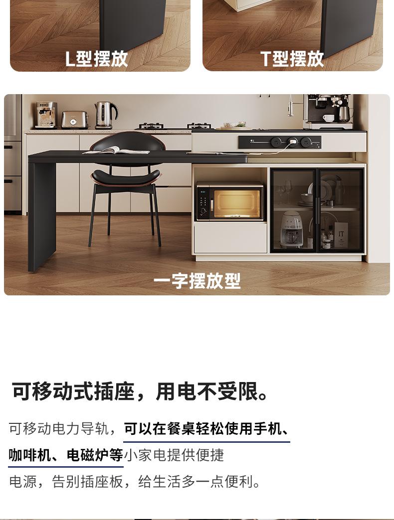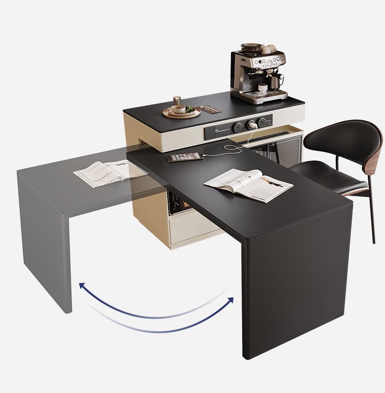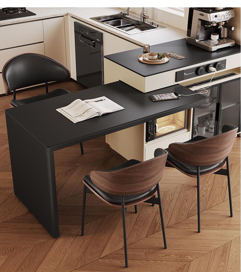 Mesa de Cocina Móvil Retráctil Giratoria Minimalista Italiana Isla Integrada Mesa de Cocina Restaurante Hogar Mesa Isla Mesa de Comedor