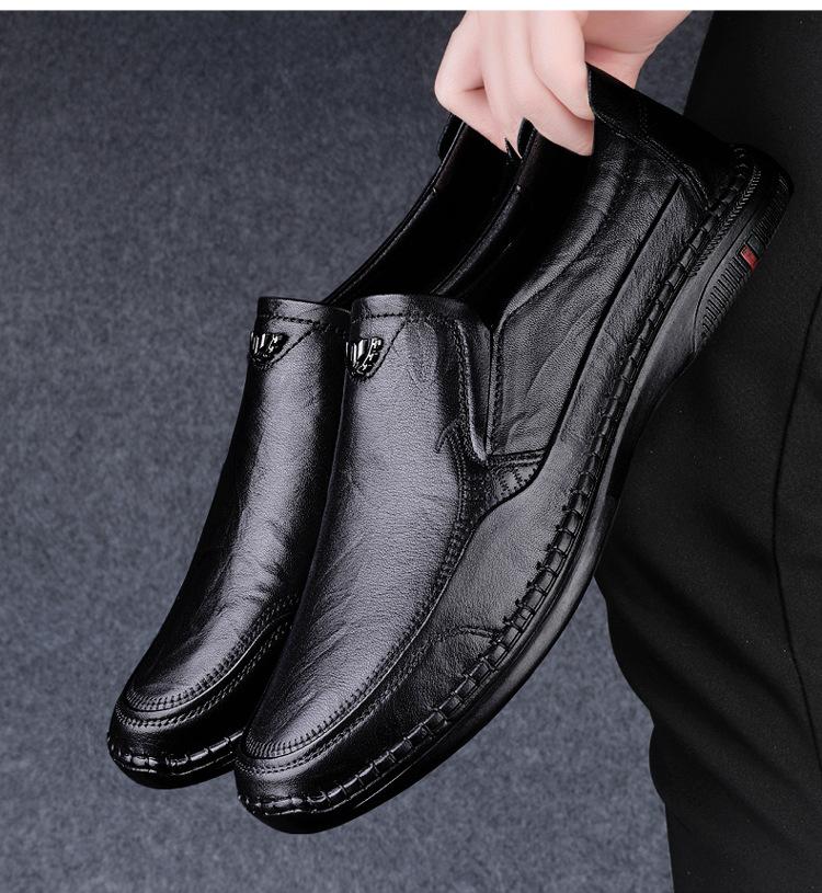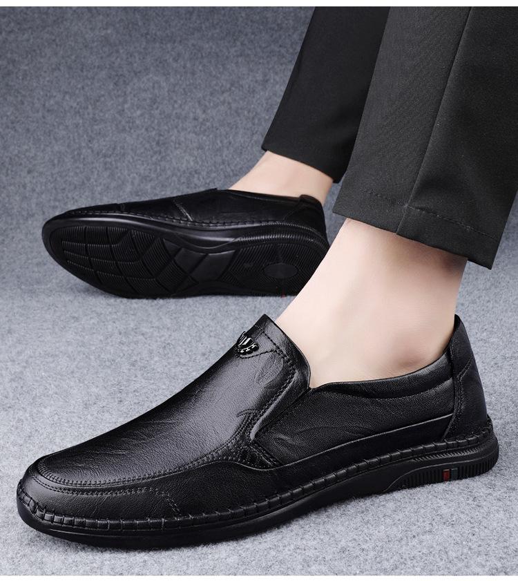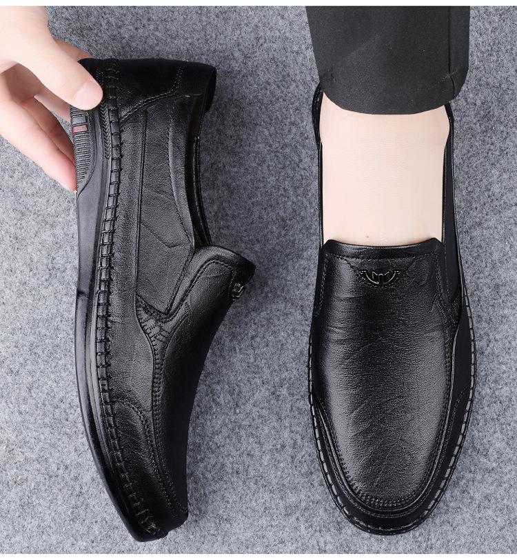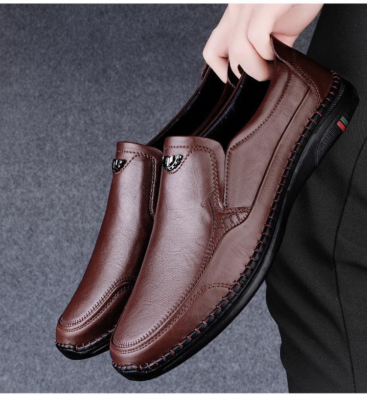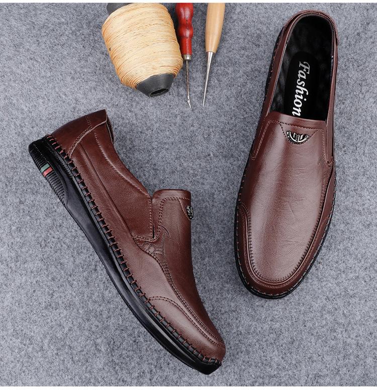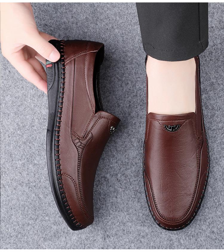 Zapatos casuales de piel para hombre primavera 2025 nueva capa superior piel de vaca costuras suelas cómodos zapatos de negocios para mediana edad zapatos para conducir