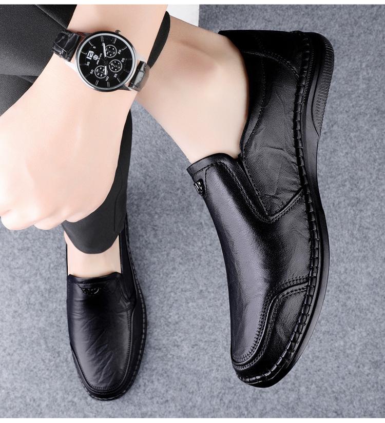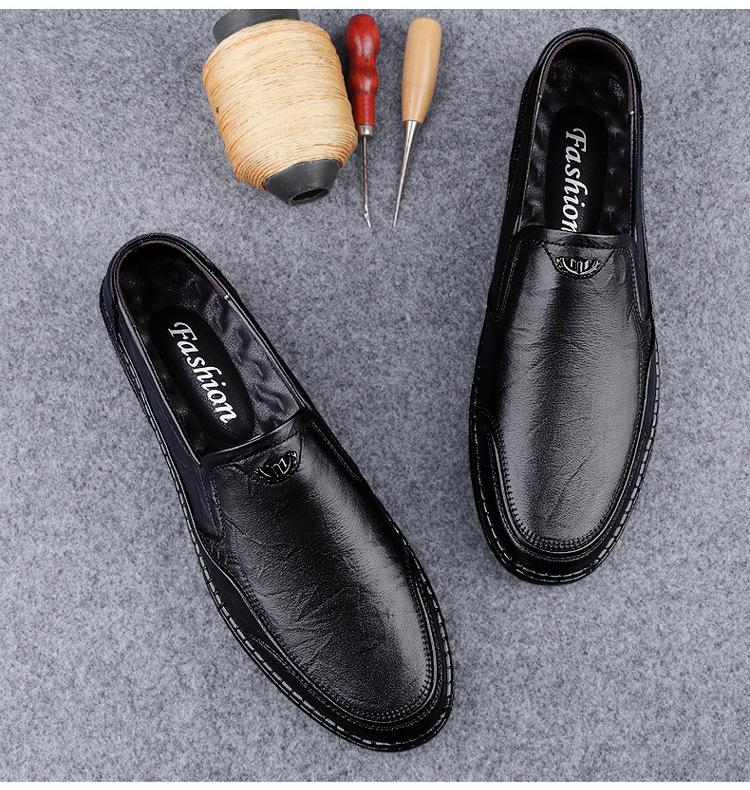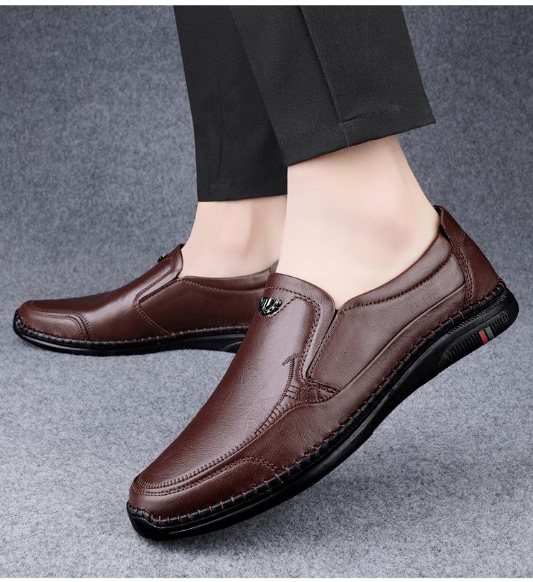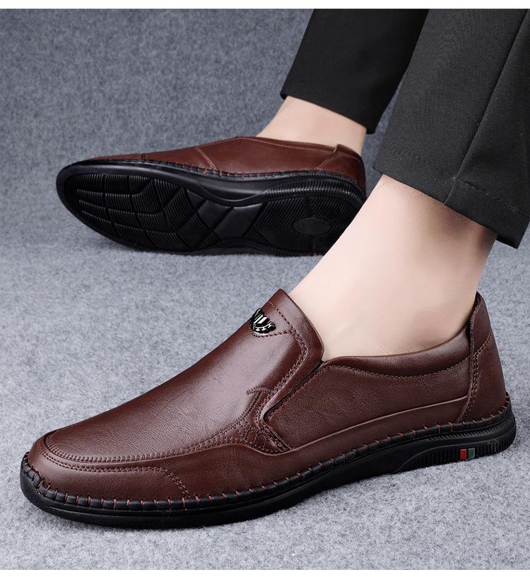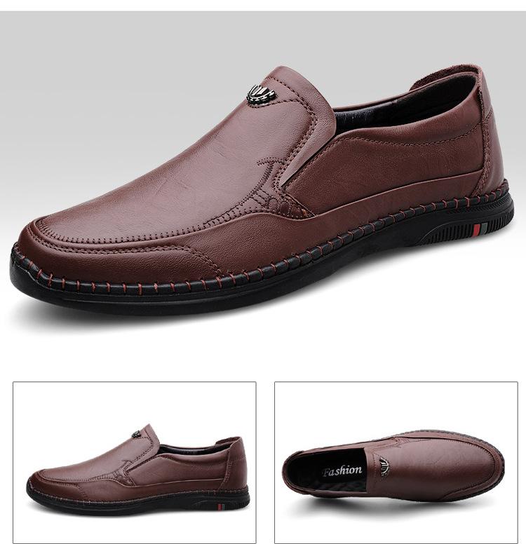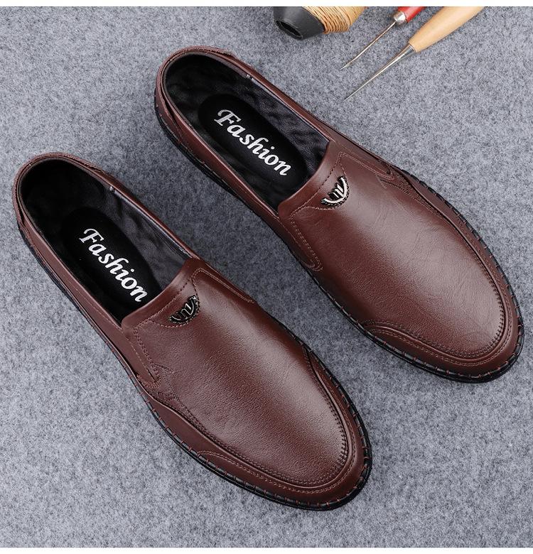 Zapatos casuales de piel para hombre primavera 2025 nueva capa superior piel de vaca costuras suelas cómodos zapatos de negocios para mediana edad zapatos para conducir