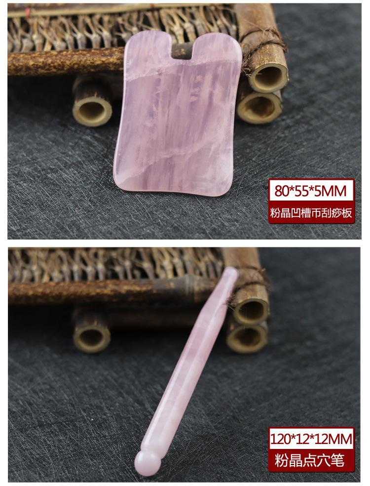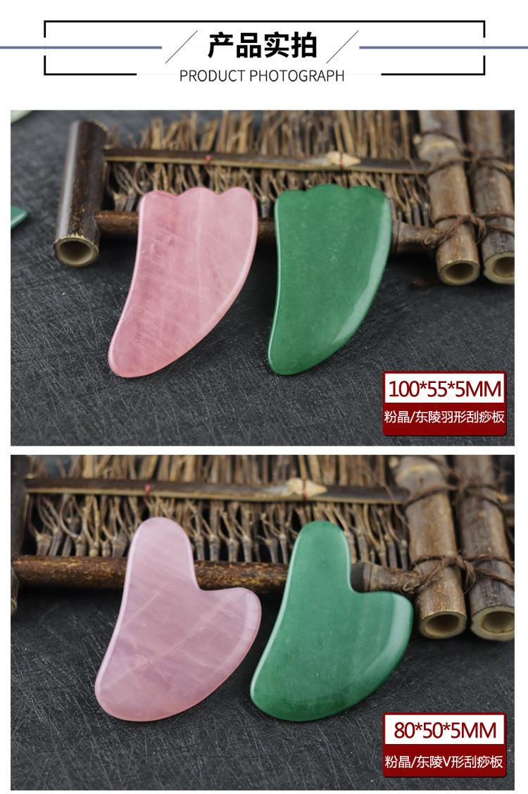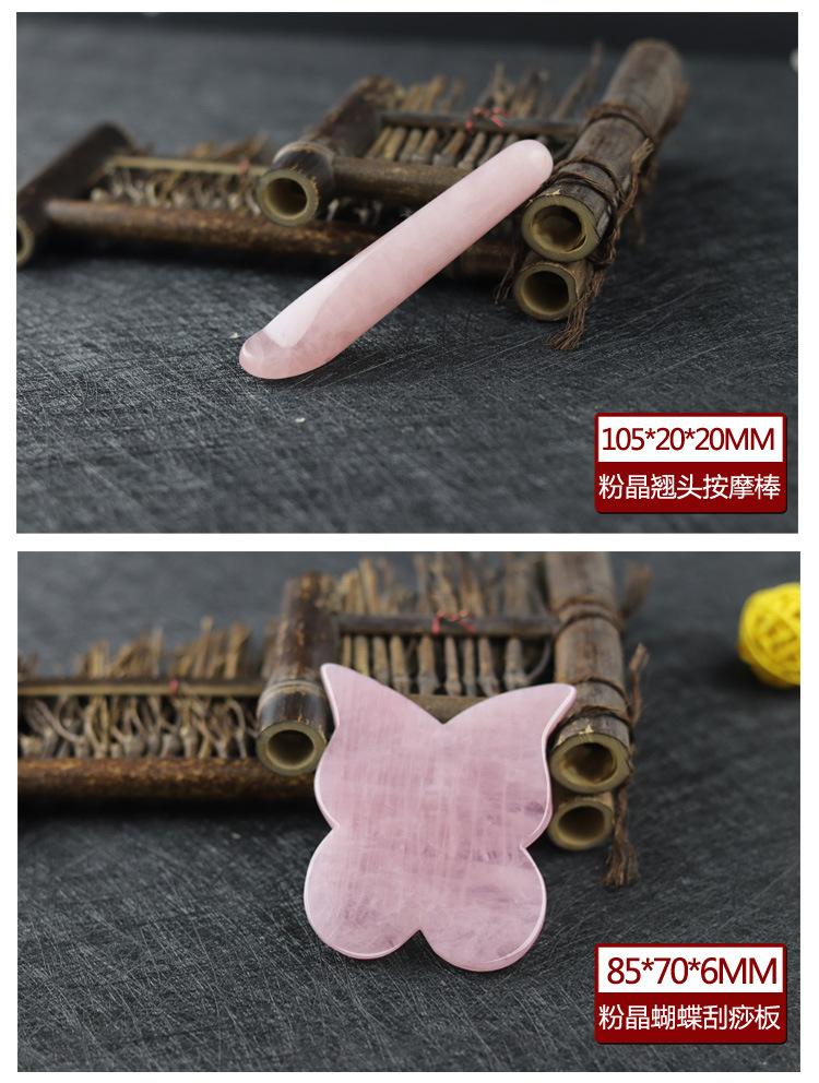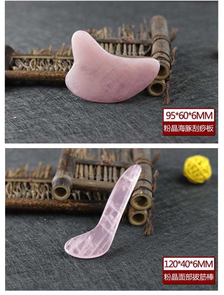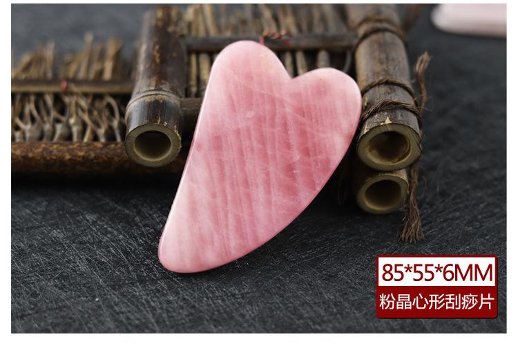 Tabla de Raspado de Jade en Forma de Corazón de Cuarzo Rosa, Palo de Masaje Facial de Cristal para Belleza, Pluma para Acupuntura, Set de Palo para Estiramiento de Tendones en Forma de Hongo