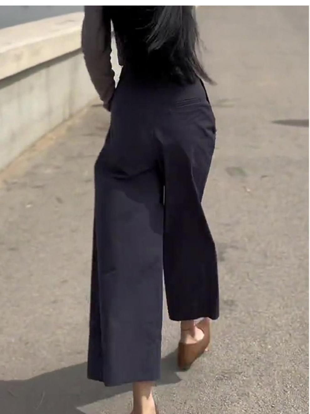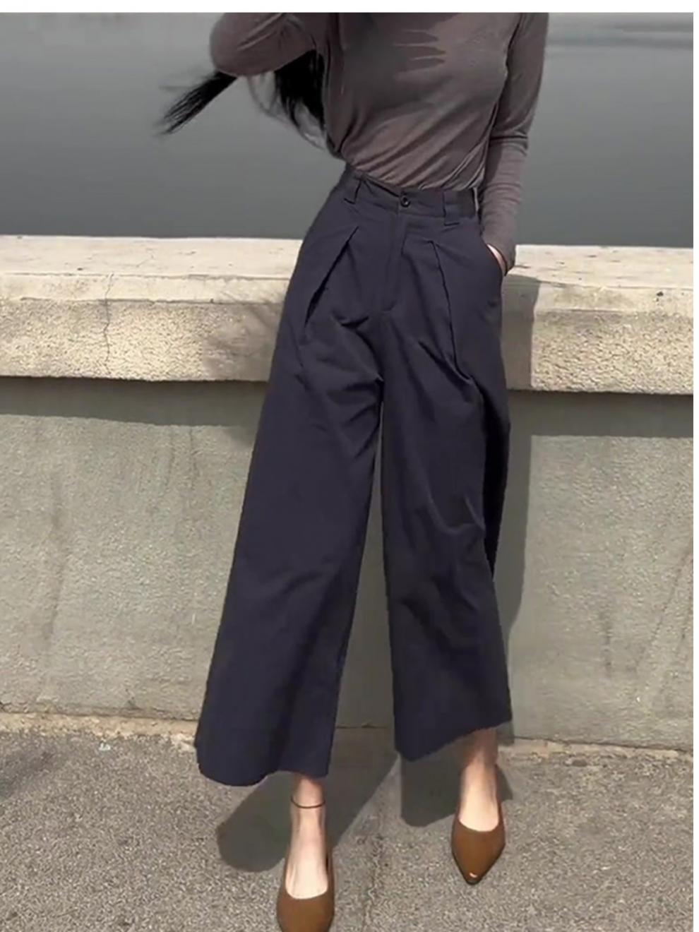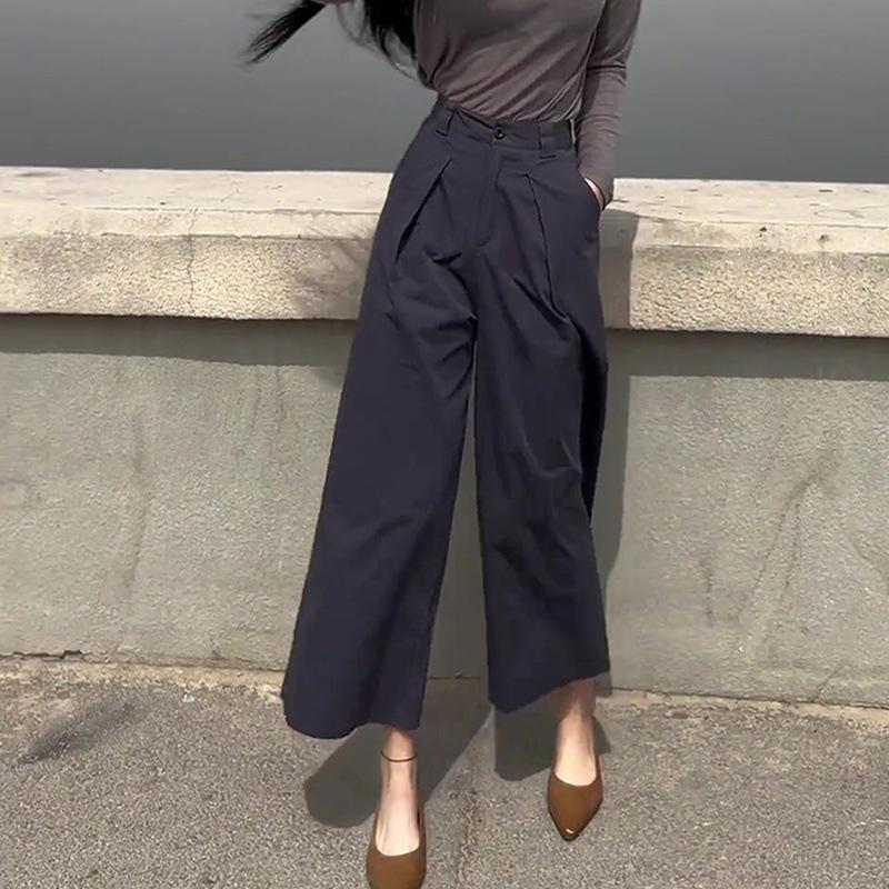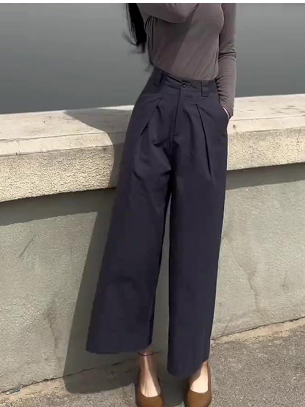 Pantalones rectos delgados de algodón puro para primavera y verano para mujer, nuevos pantalones capri casuales de otoño de pierna ancha sueltos adelgazantes de cintura alta para petite