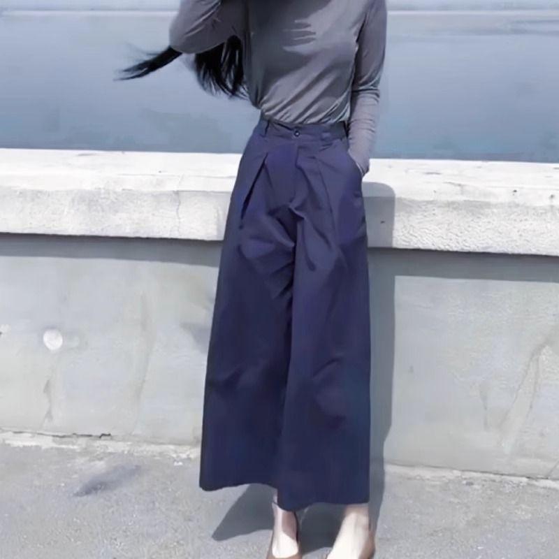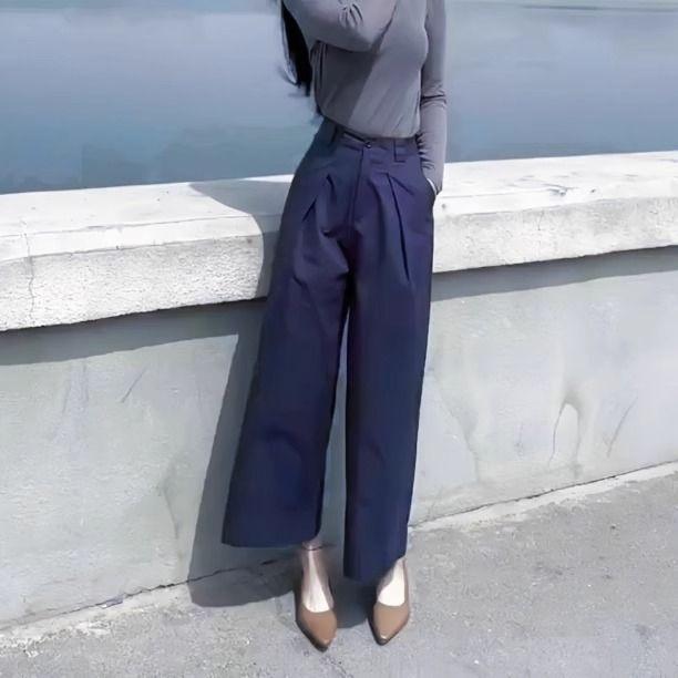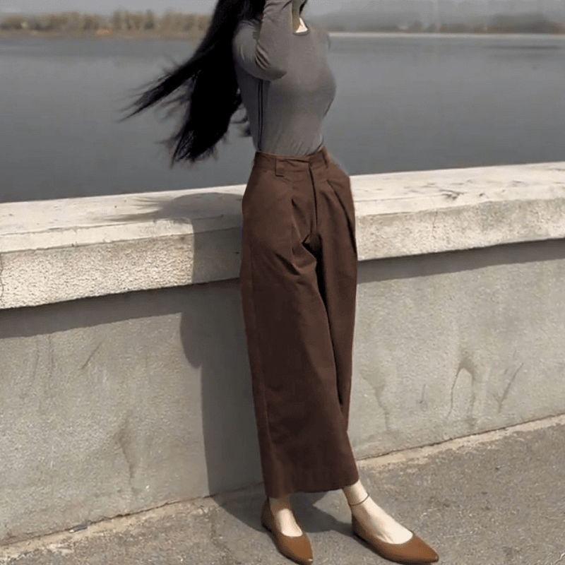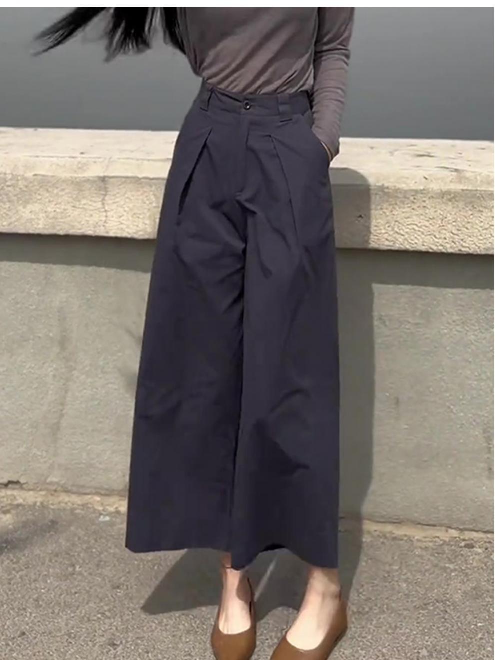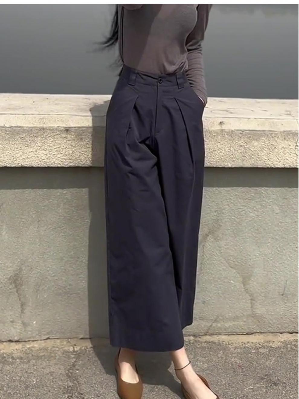 Pantalones rectos delgados de algodón puro para primavera y verano para mujer, nuevos pantalones capri casuales de otoño de pierna ancha sueltos adelgazantes de cintura alta para petite