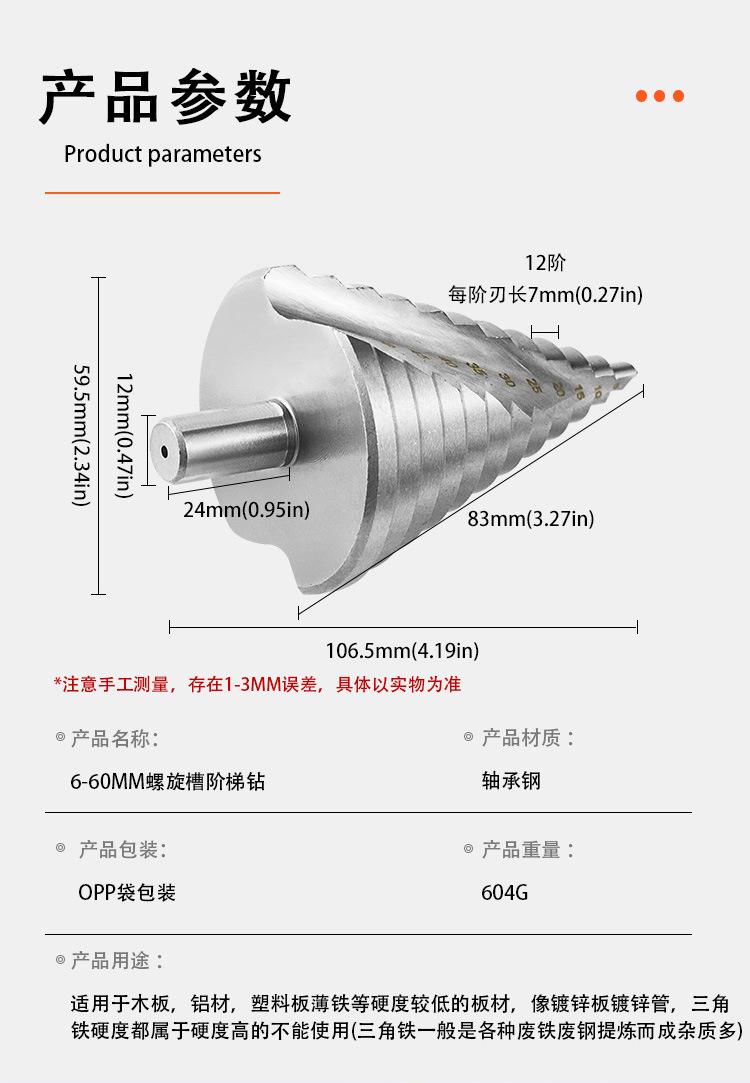 6-60mm spiral groove step drill