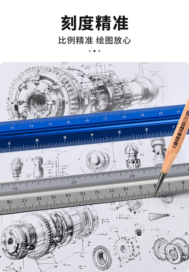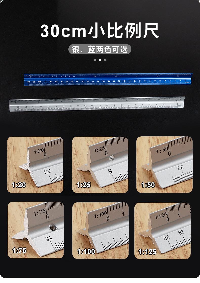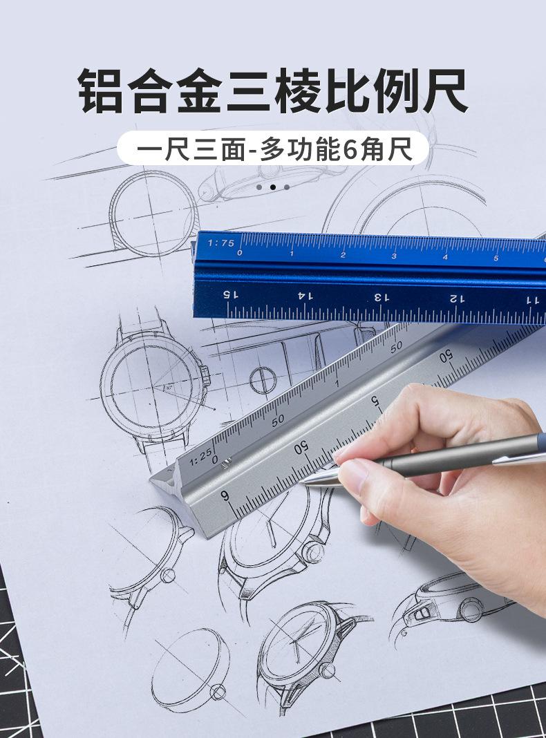 Escala Triangular Aleación de Aluminio Triángulo Escala Grande Regla Mitsubishi Dibujo Interior Dibujo Arquitectónico Lupa Regla de Medición