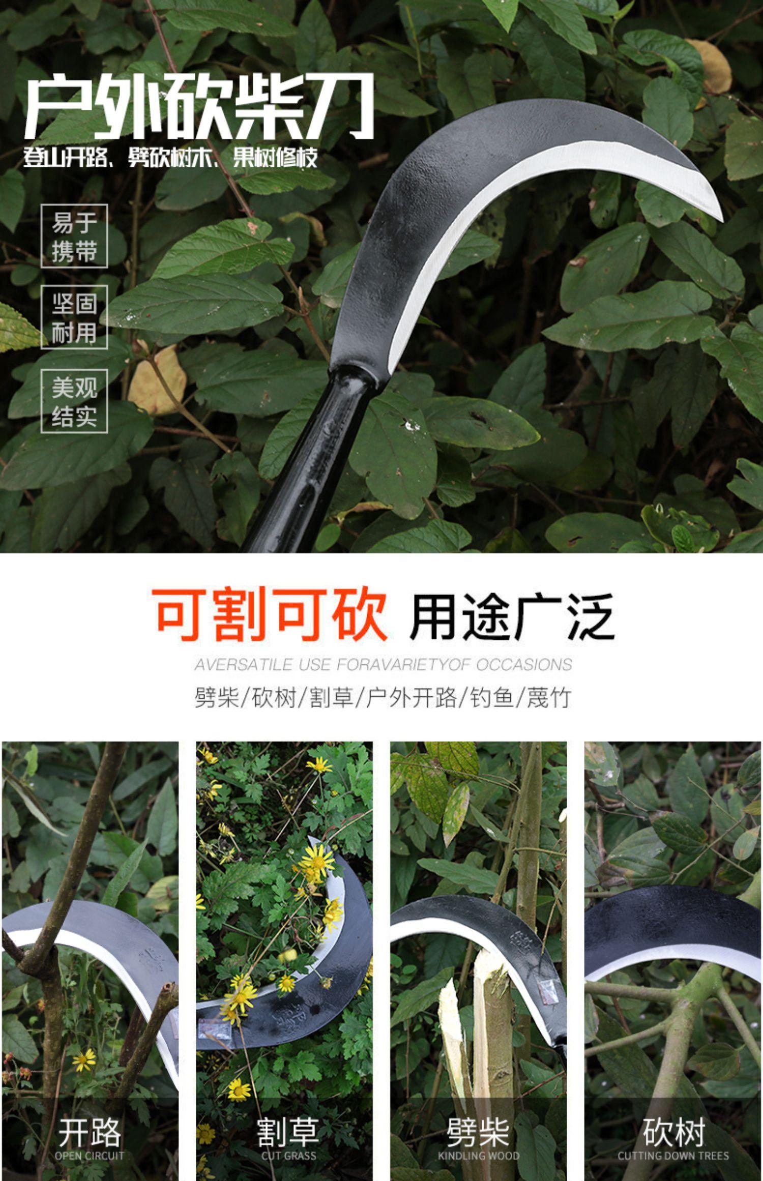 Hoz, Machete, Cimitarra para cortar hierba, Machete para cortar, Insignia Forjada para exteriores Forjado Acero al Manganeso Longshui Dazhou