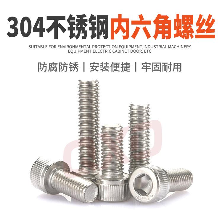 Tornillo de cabeza hueca hexagonal de acero inoxidable 304 Tornillo de cabeza de copa DIN912 M3M4M5M6M8 tornillo moleteado