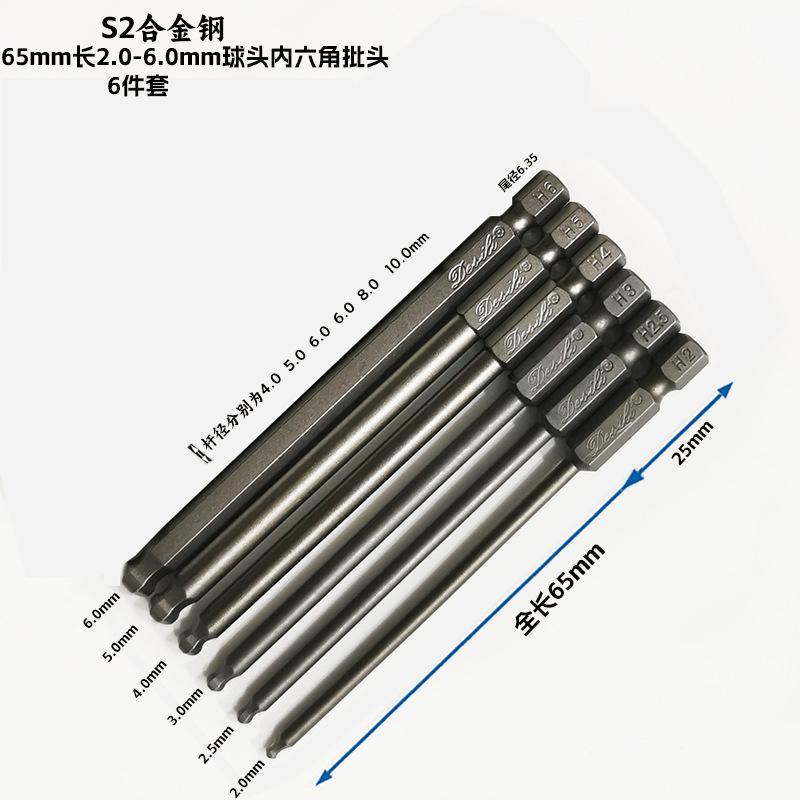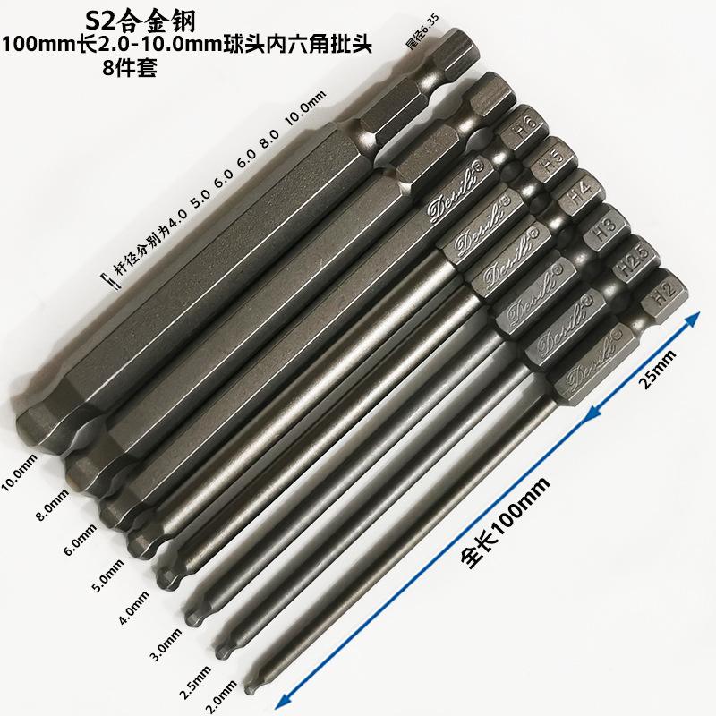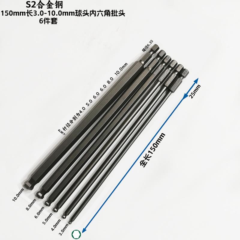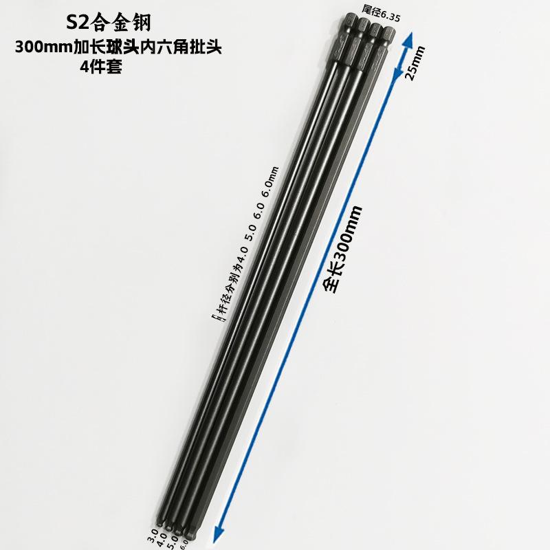 Extensión de Cabeza de Bola Magnética Bit Hexagonal 300mm Bit Eléctrico S2 Cabeza Redonda Cabeza de Destornillador Hexagonal