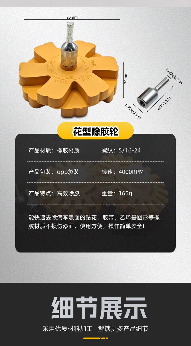 Boxed flower shape rubber removal wheel diameter 90mm thickness 20mm weight 165g