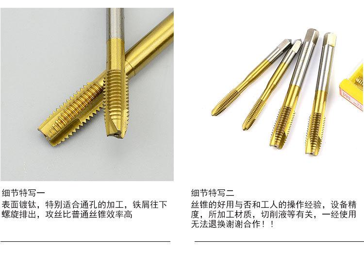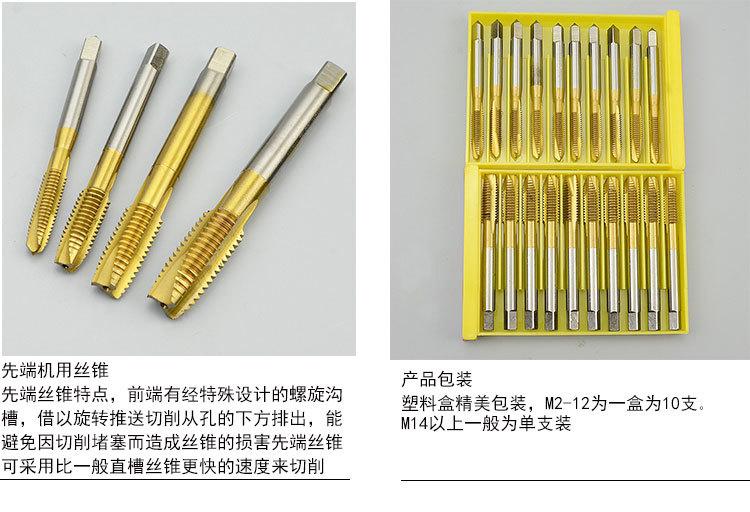 El macho de punta es lo mismo que el macho de fondo, adecuado para el roscado de agujeros pasantes, las virutas se descargan hacia abajo. El macho espiral es un macho de descarga de virutas hacia arriba, adecuado para el roscado de agujeros ciegos.