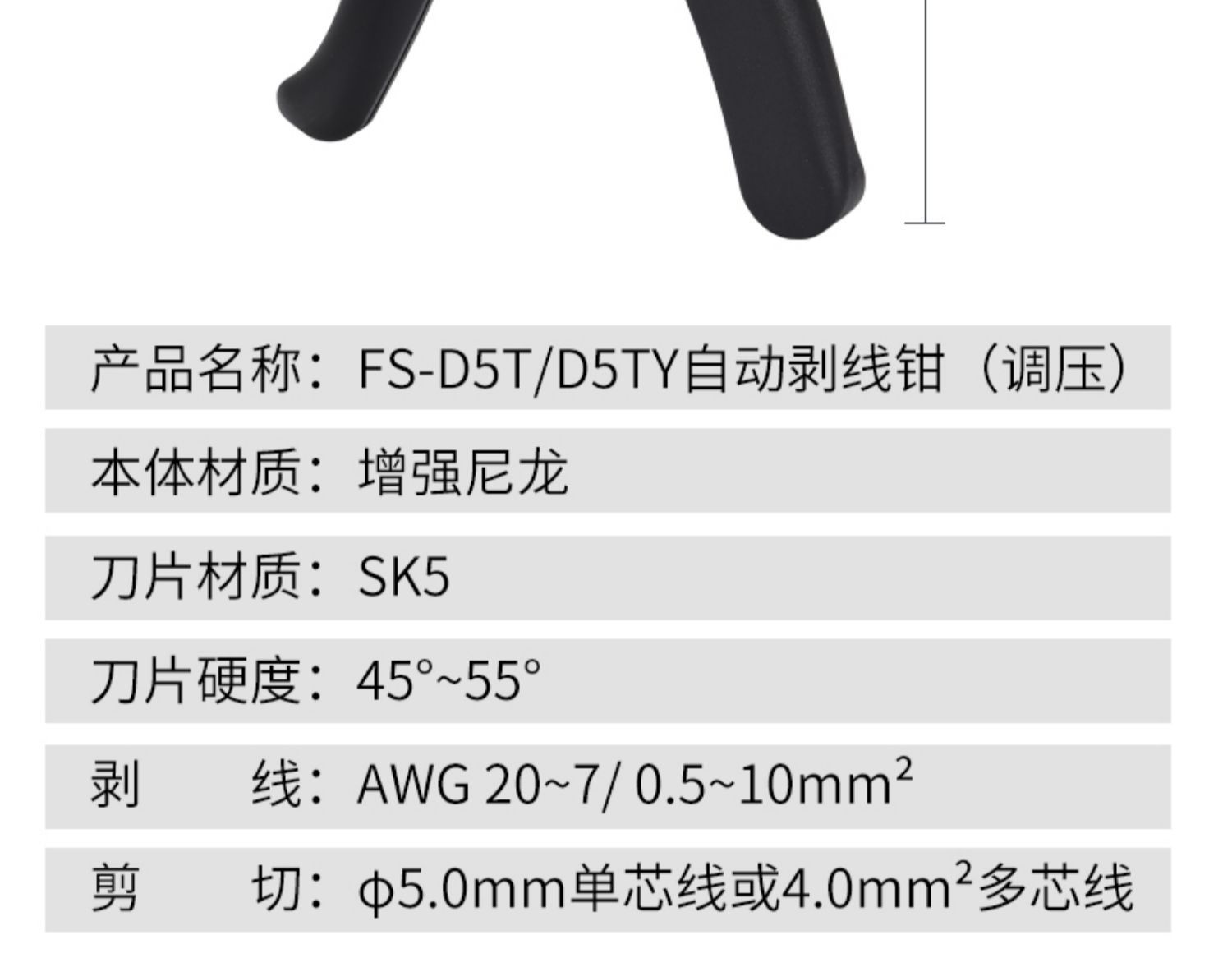 Fs-d5 (standard model), Fs-d5y (with crimp), Fs-d5t (with adjustment), Fs-d5ty (with adjustable crimp)