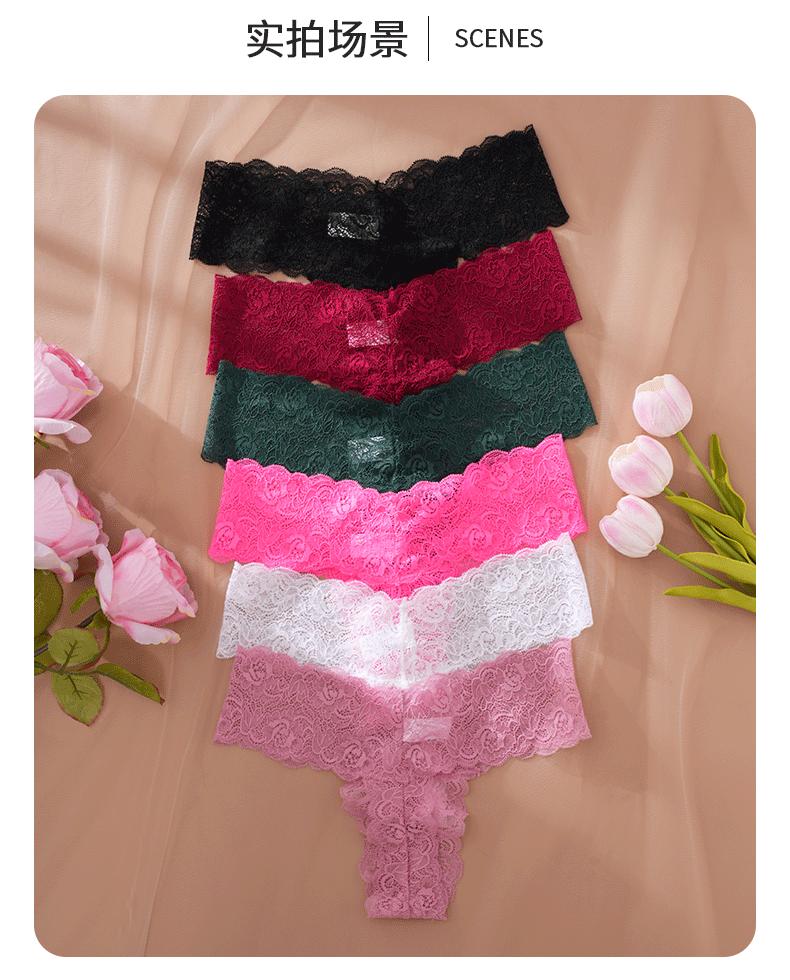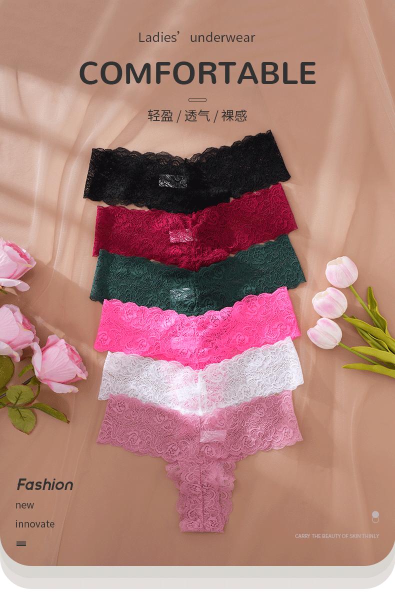 Ropa interior sexy de encaje de tiro bajo europea y americana para mujer, transpirable, entrepierna de algodón puro, sexy, sin costuras, para mujer, venta al por mayor de comercio exterior