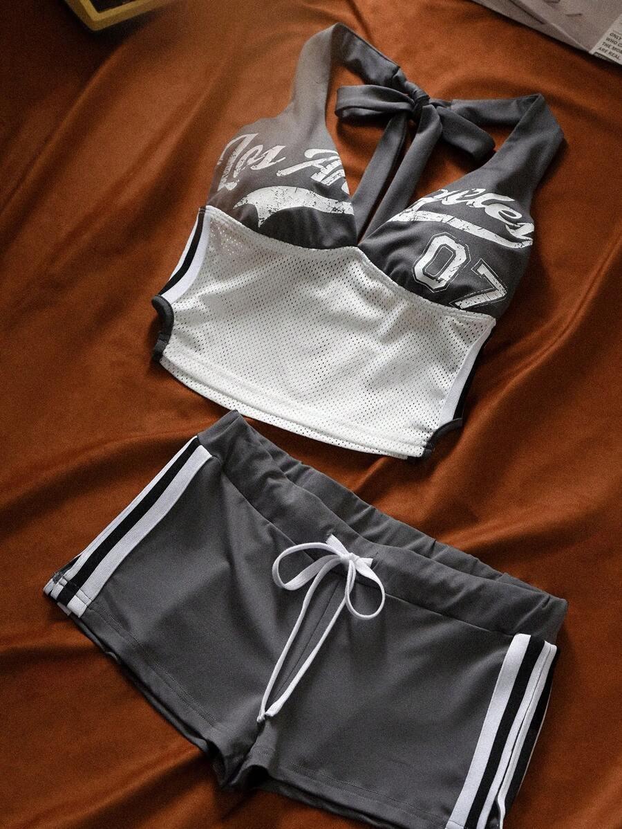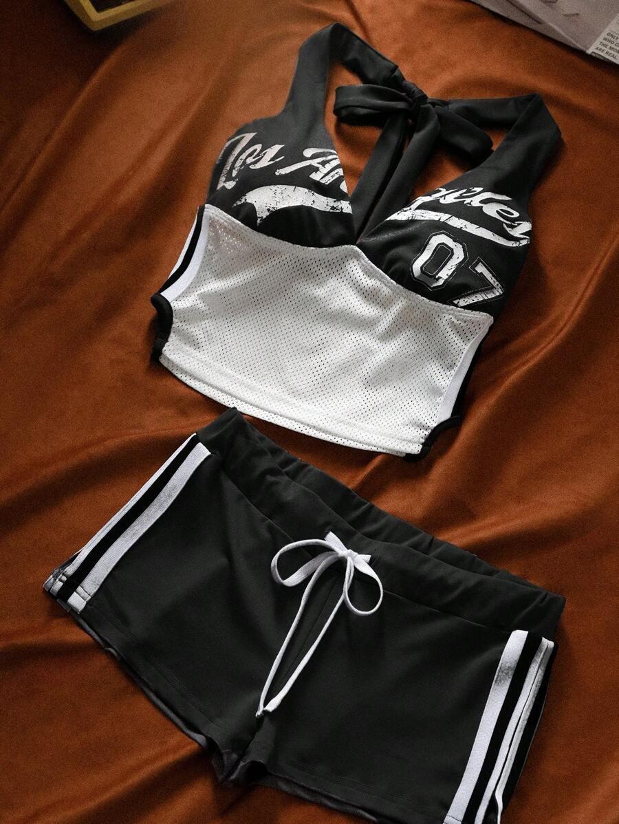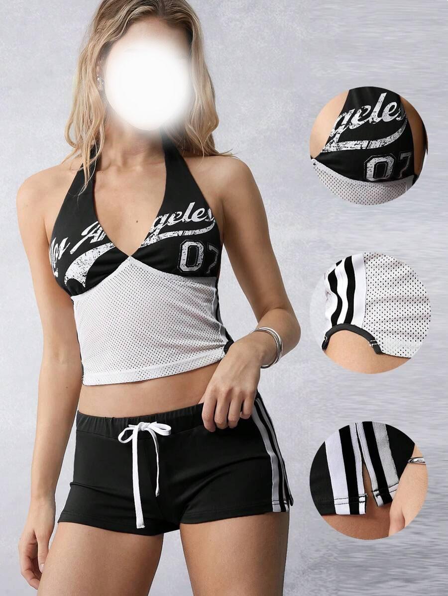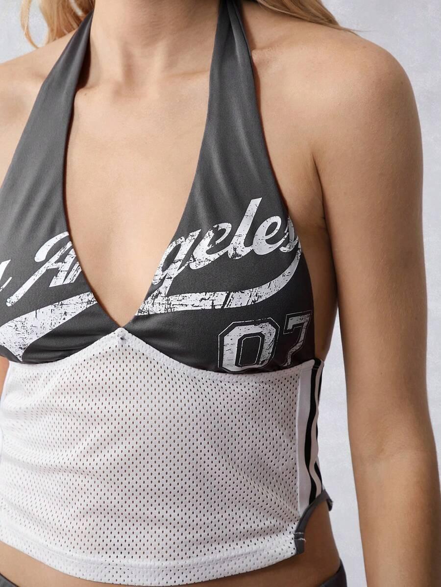 Verano Europeo y Americano Transfronterizo Diseño de Moda Urbana Cuello Halter Estampado de Letras Chaleco Corto Versátil Adelgazante