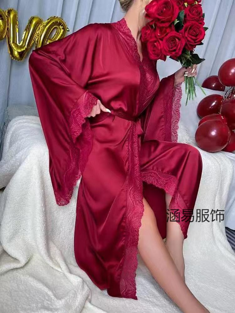 Compra Pijama de Satén Transfronterizo Nuevo de Hanyi para Mujer Primavera y Verano Encaje Lujo Ligero Camisón Fresco Bata Manga Larga para Casa al por mayor en Joom.pro