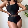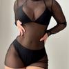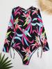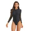 Traje de baño europeo y americano transfronterizo de color sólido de una pieza triángulo sexy hueco bikini protección solar manga larga comercio exterior traje de baño para mujer