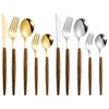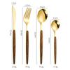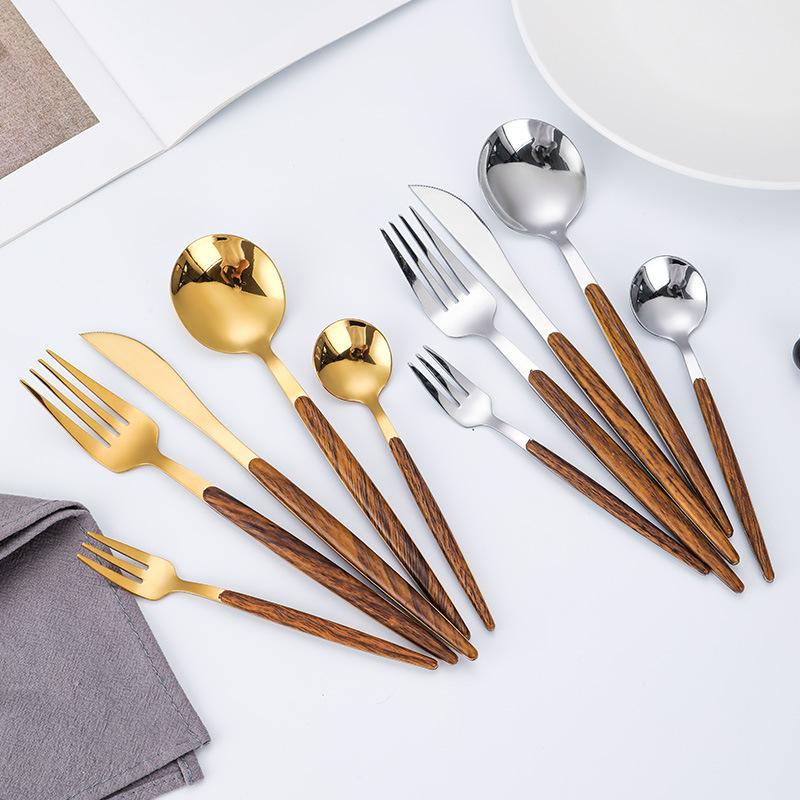 Juego de 4 piezas Juego de 5 piezas Juego de cubiertos de acero inoxidable 430 portugués mango de imitación madera cuchillo, tenedor y cuchara de acero inoxidable juego de regalo