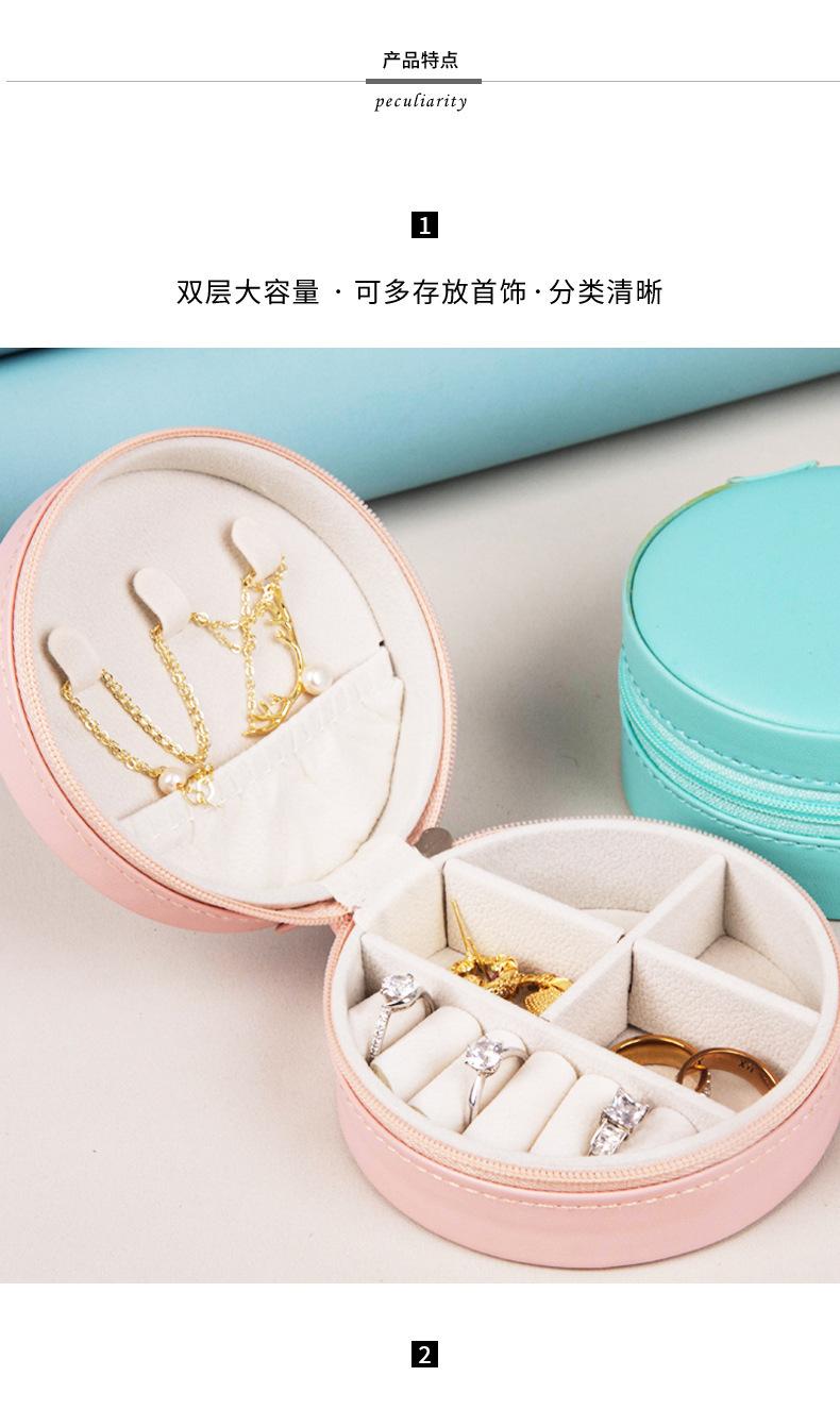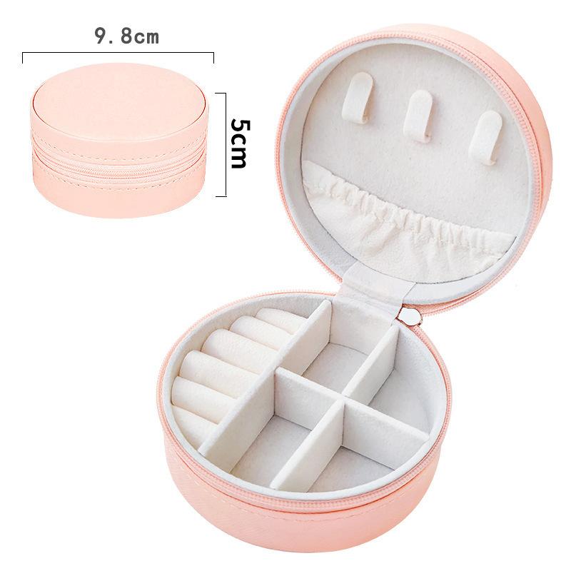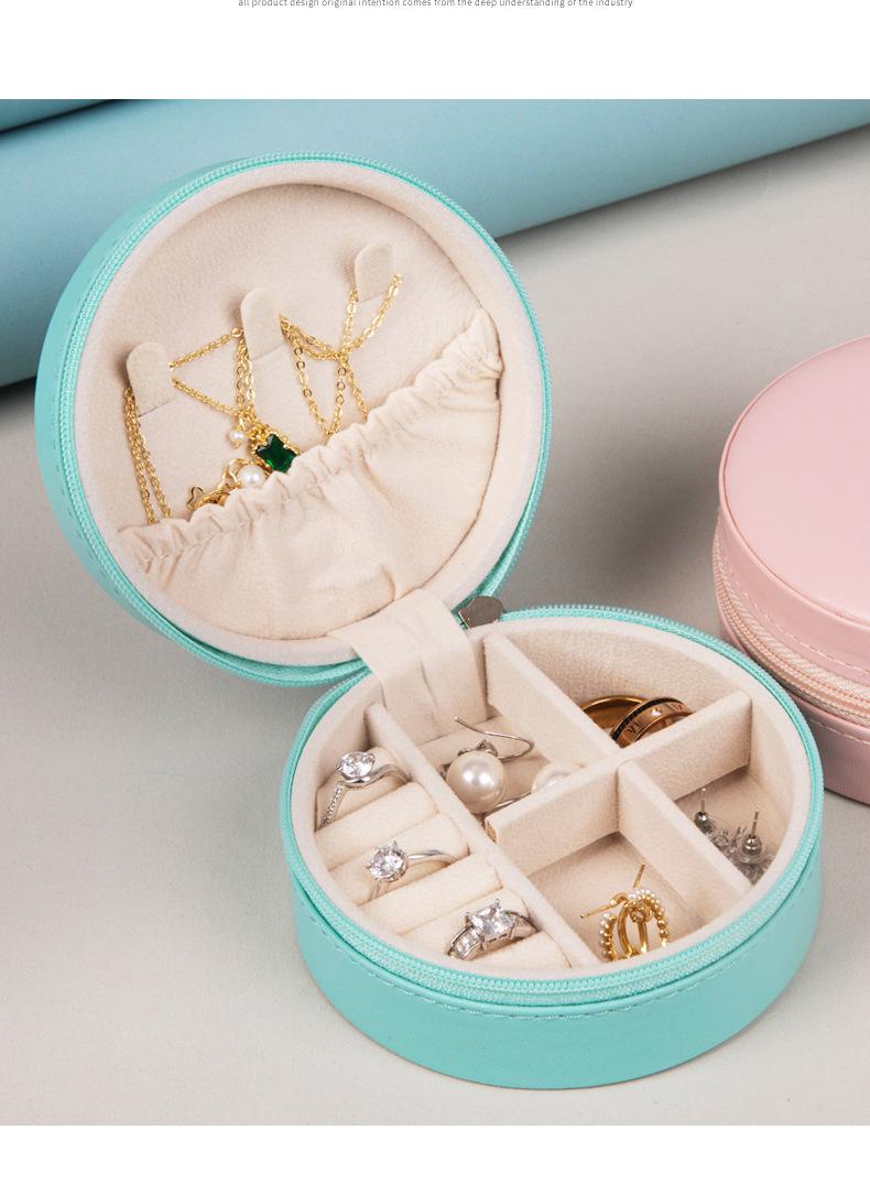 Caja de Joyería Redonda Simple Ins Caja de Almacenamiento de Joyería Viaje Portátil PU Aretes Collar Caja de Embalaje de Joyería