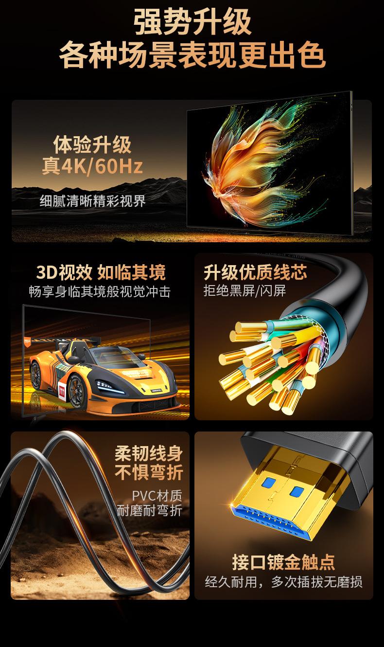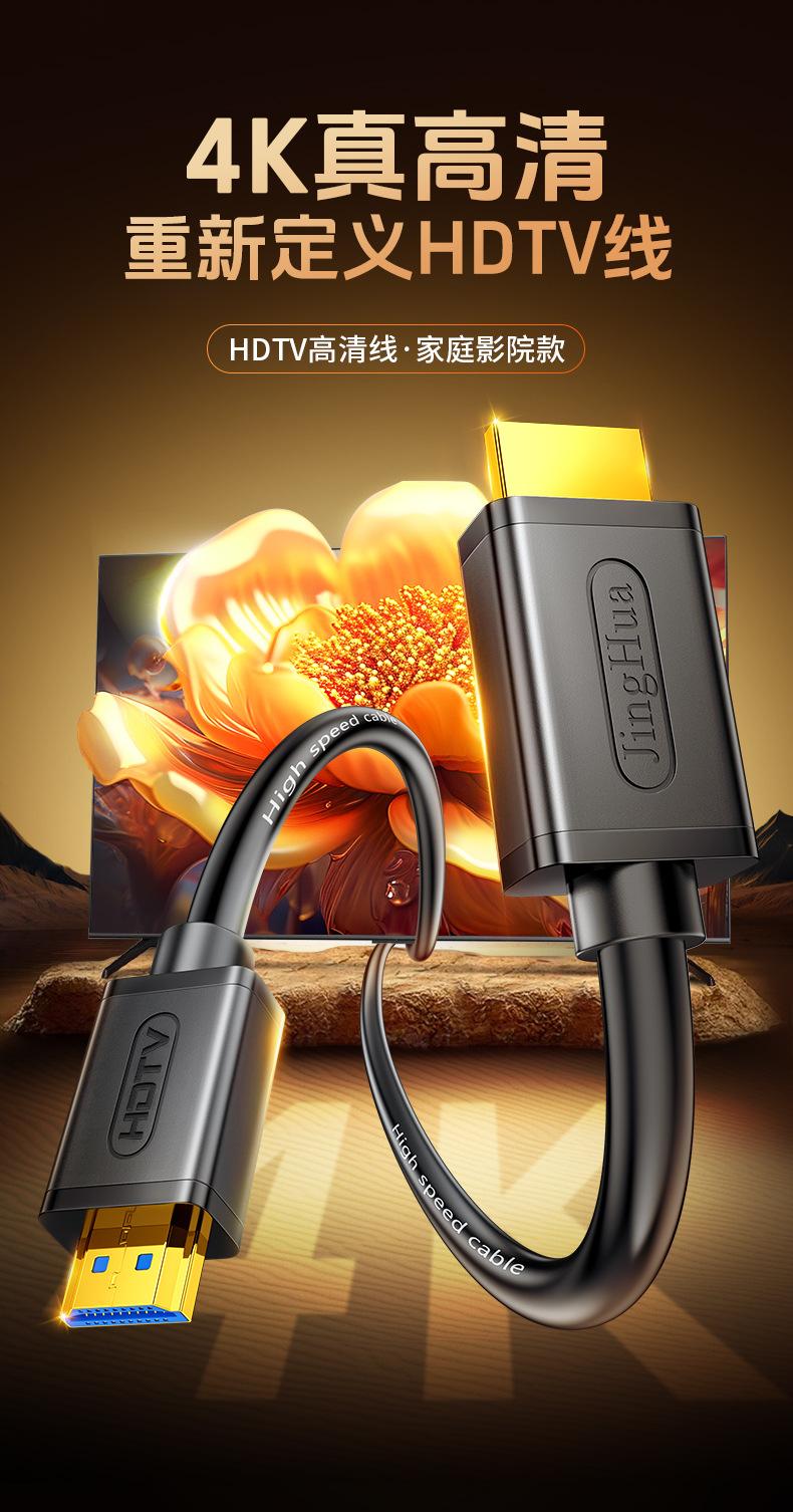Jinghua Hdtv2.0 Versión 4K60Hz Cable de Pantalla para Monitor de TV y Computadora Proyector Cable HD Venta al por Mayor