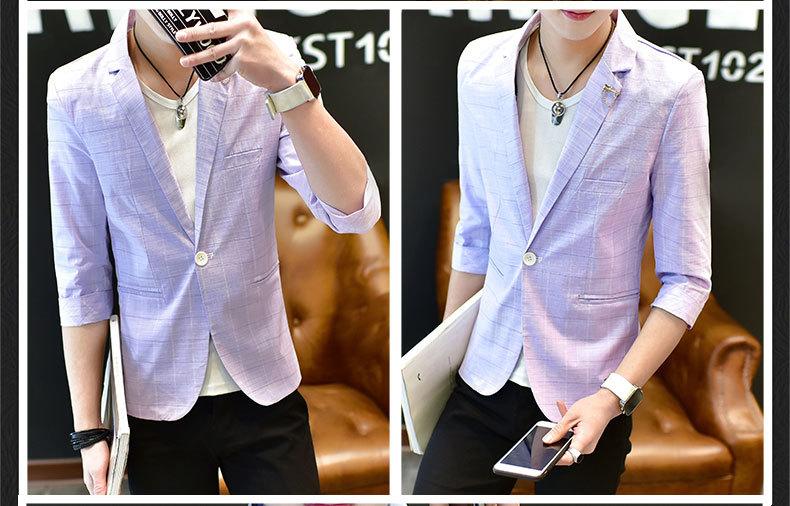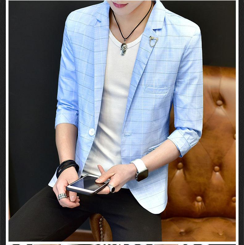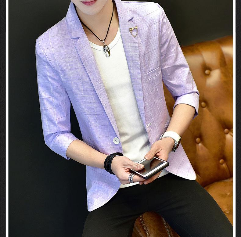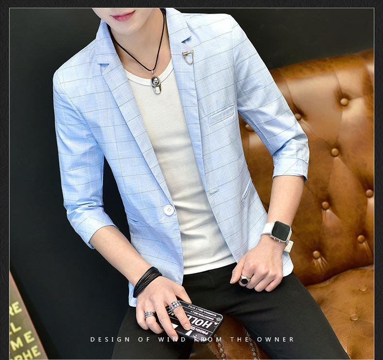 Traje de verano de manga tres cuartos para hombre estilo coreano moderno traje pequeño de manga media chaqueta de traje de manga corta para hombre