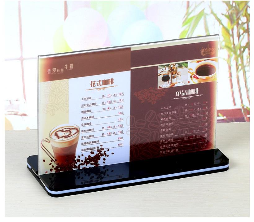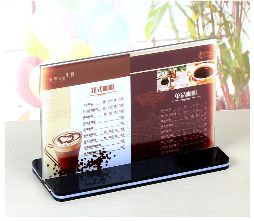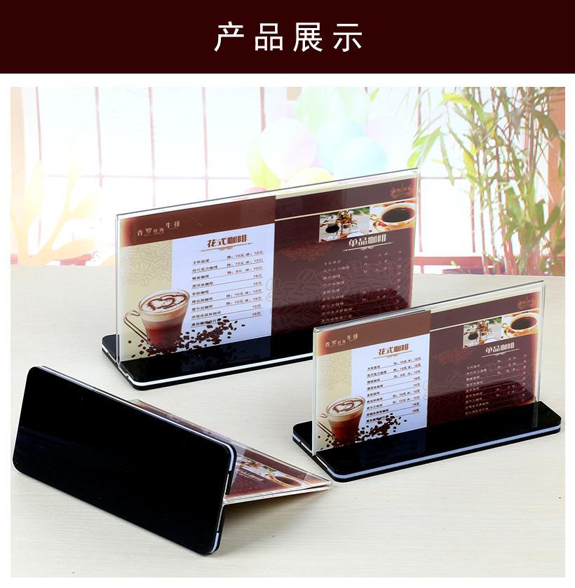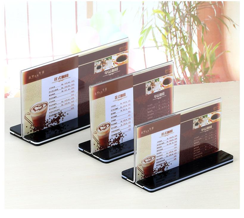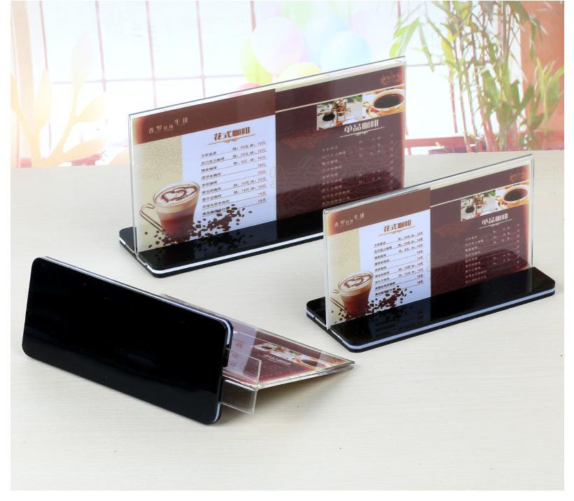 Fondo Negro Tarjeta de Mesa Acrílica Desplegable Transparente Tablero de Exhibición Publicitaria Soporte de Exhibición Menú Té con Leche Agua Letrero Tipo T A4 Personalizado