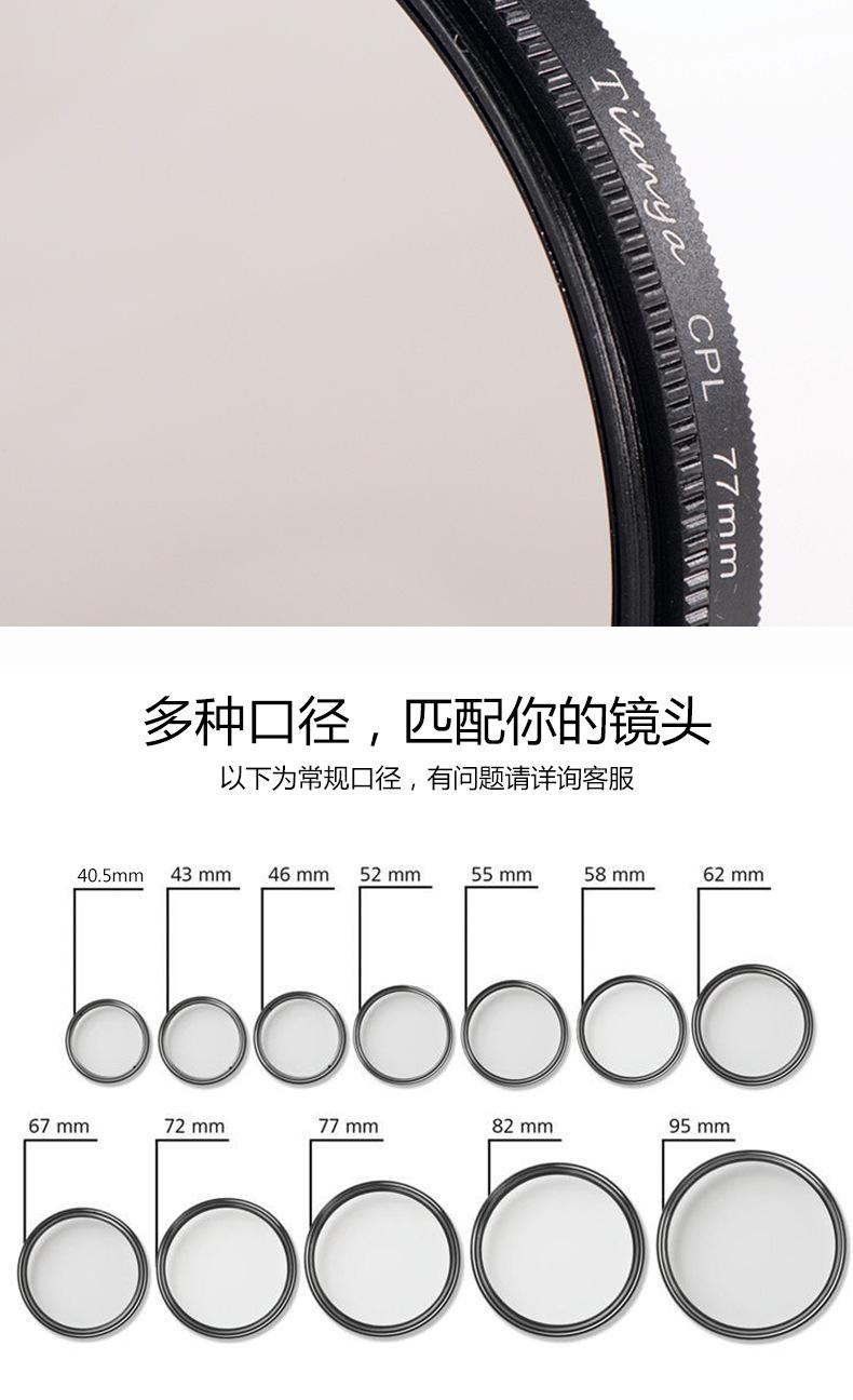 Tianya 30-95mm Filtro Polarizador CPL Redondo Estándar Polarizador Sin Recubrimiento para Aumentar la Saturación y Eliminar